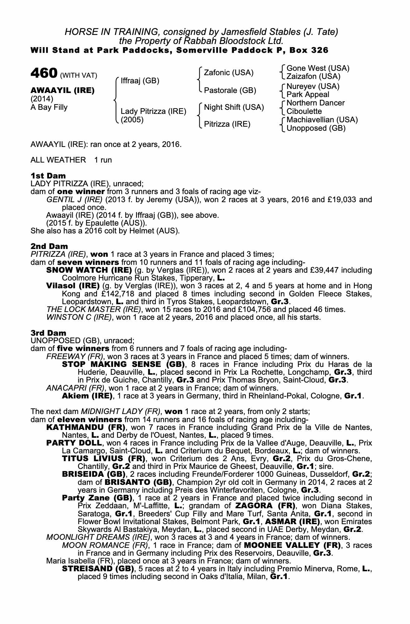 Consignor: Jamesfield Stables (J. Tate)
