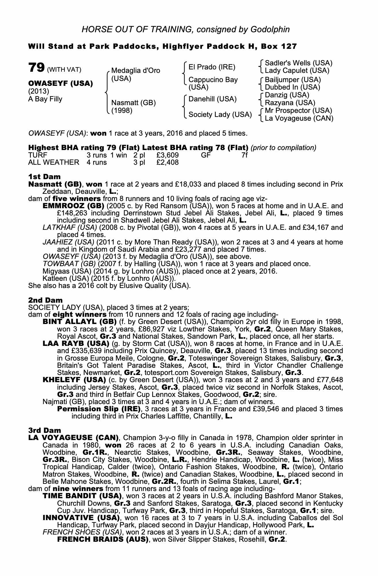Online Sale - 6th June 2024 lot 96 Naadyaa (GB) (M. by Muhaarar (GB)), The Gallops (Mrs A. Dunn)=>Aleem Kanji 2,000 gns