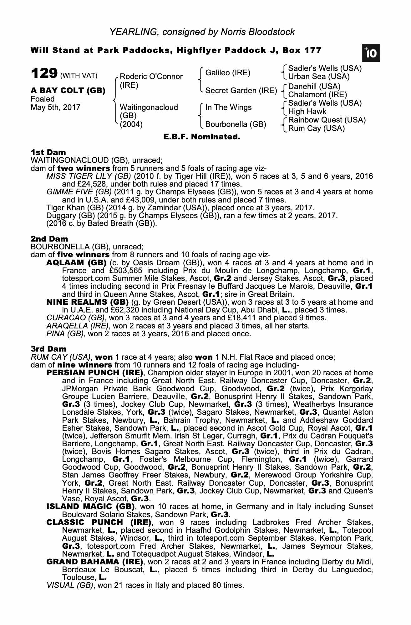 October Yearling Sale, Book 2 2012 lot 1217 C. by Champs Elysees (GB) 2011, Lynn Lodge Stud, Ireland=>Vendor 30,000 gns