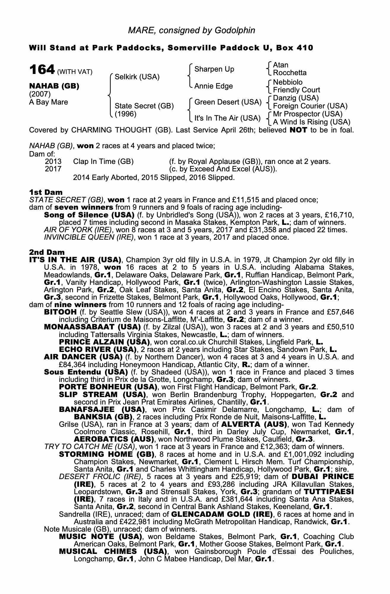 February Sale 2012 lot 281 Aiaam Al Wafa (IRE) (F. by Authorized (IRE)), James Tate Racing Ltd.=>Steve Jakes 800 gns