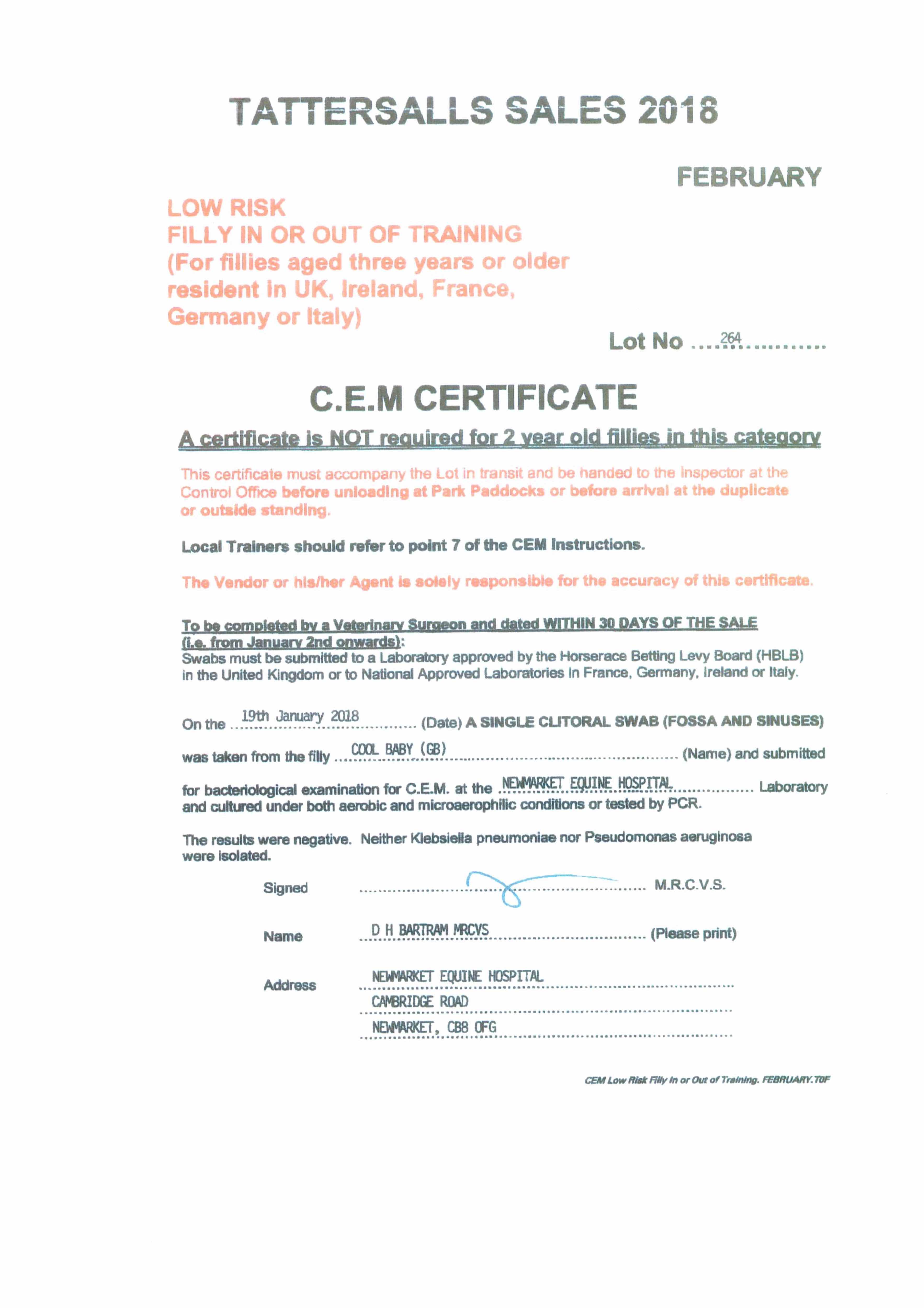 February Sale 2018 lot 193 Cool Breeze (IRE) (F. by Dream Ahead (USA)), Trillium Place Stables (D. Simcock)=>Vendor 10,000 gns