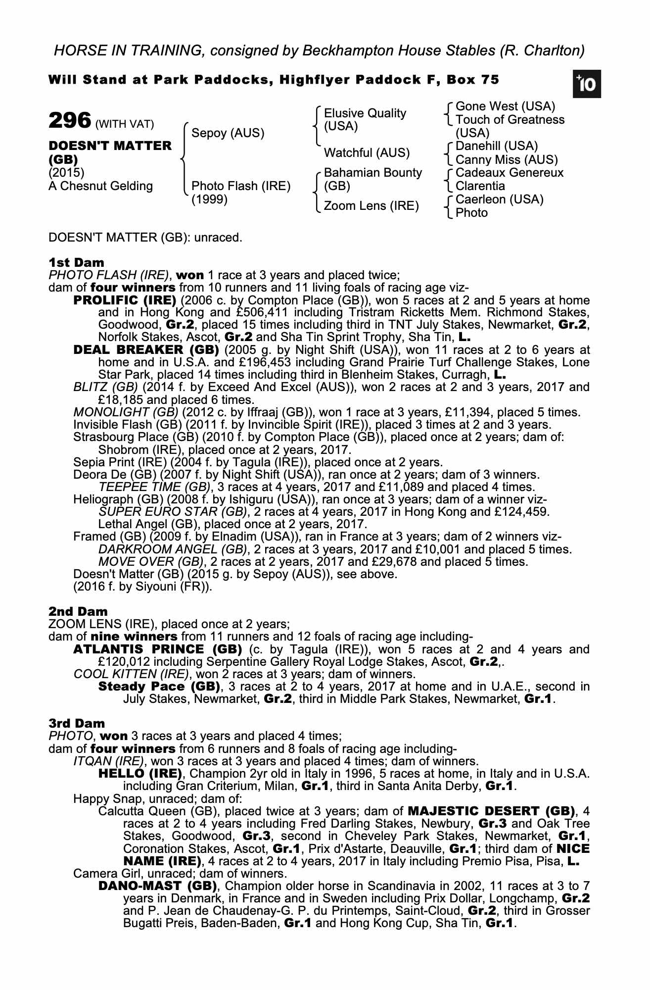 July Sale 2023 lot 31 Heliograph (GB) (M. by Ishiguru (USA)), Beechdown Farm Stables (C. Cox)=>Lot Not Sold