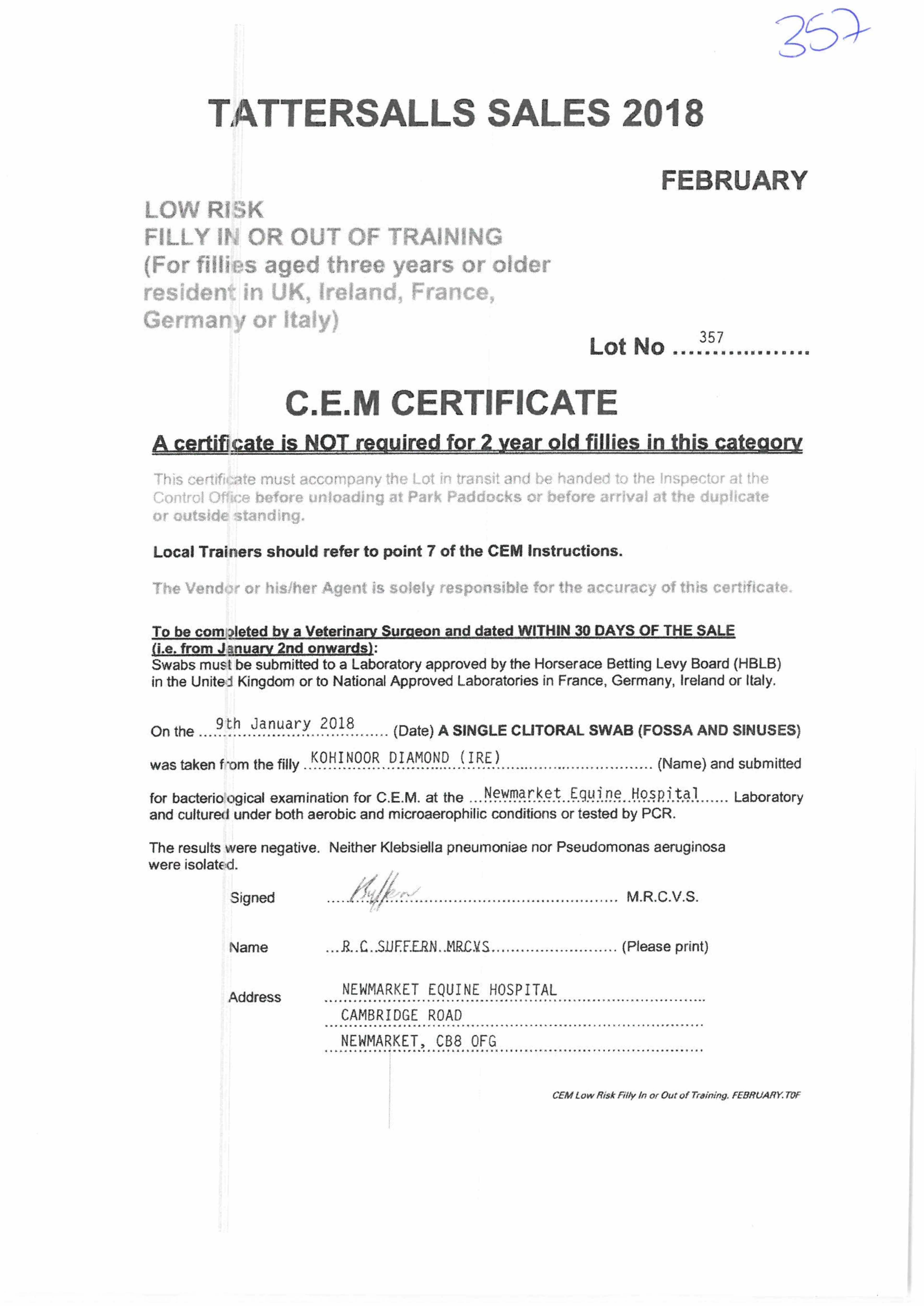 Consignor: Heath House Stables (Sir Mark Prescott, Bt.)