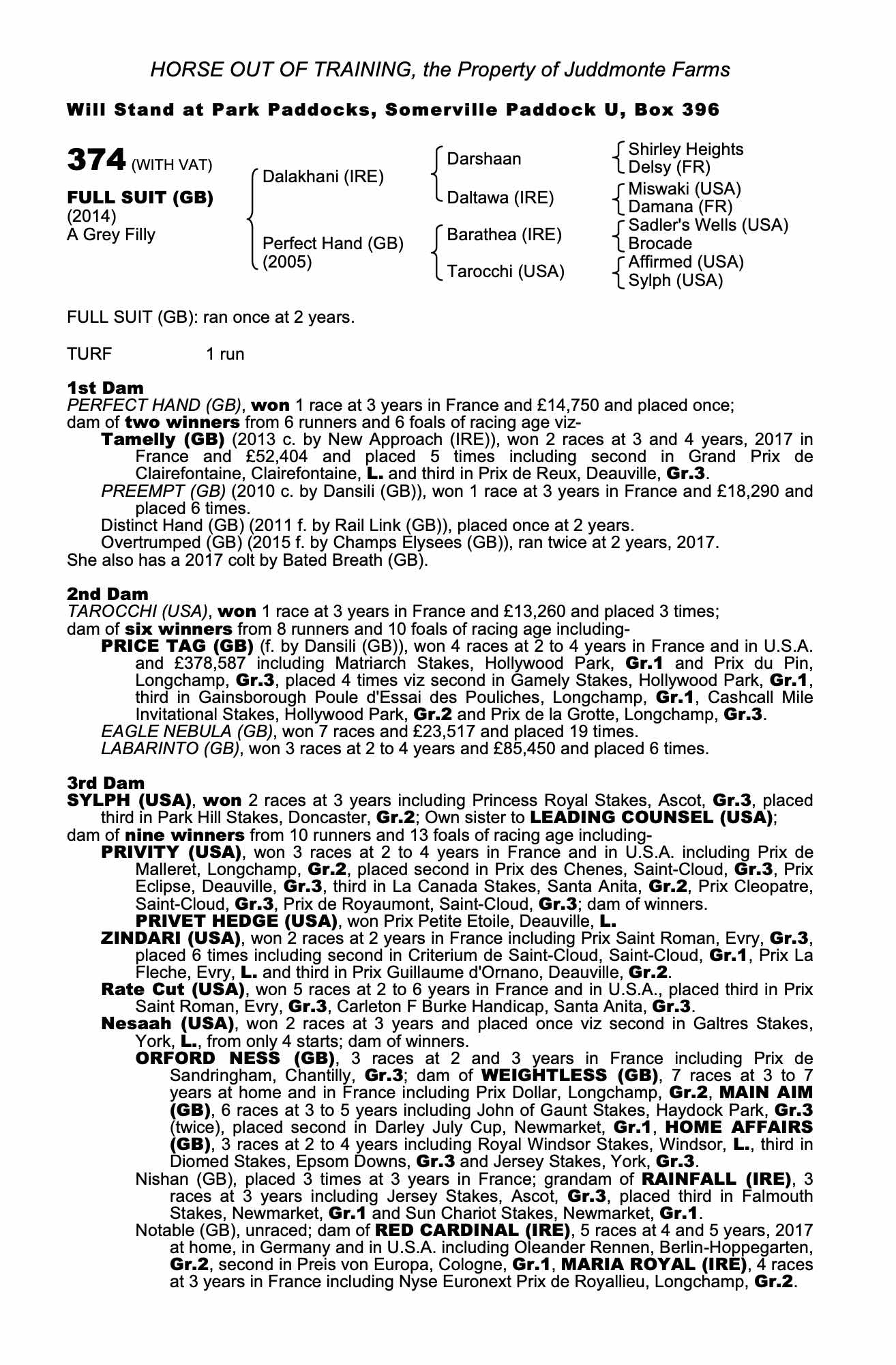 July Sale 2015 lot 637 Welfare (GB) (F. by Cape Cross (IRE)), Juddmonte Farms=>S Wilson 6,000 gns