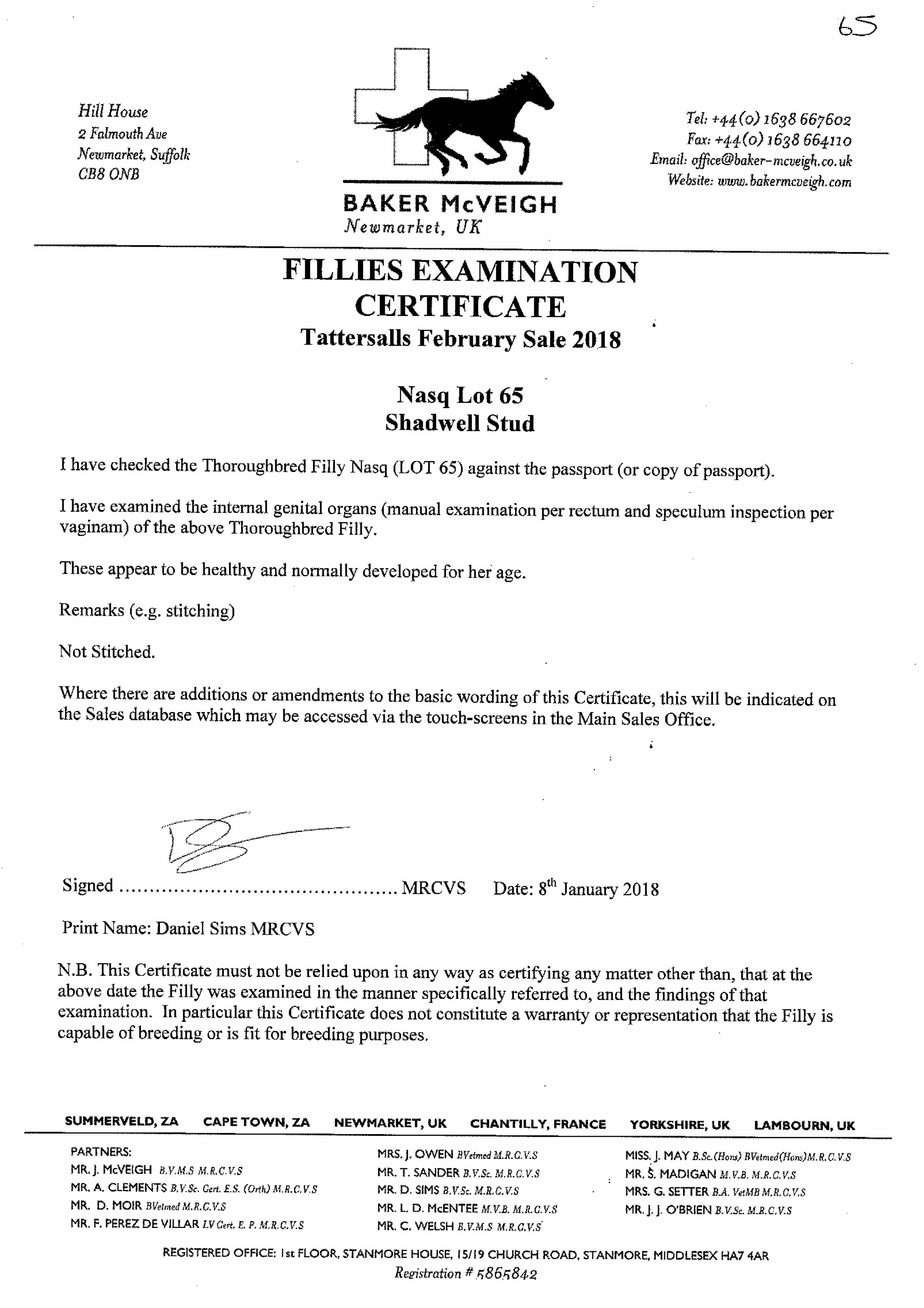 February Sale 2019 lot 174 Wanaasah (GB) (F. by Cape Cross (IRE)), Shadwell Stud=>Compas Equine / David Loughnane Racing 30,000 gns