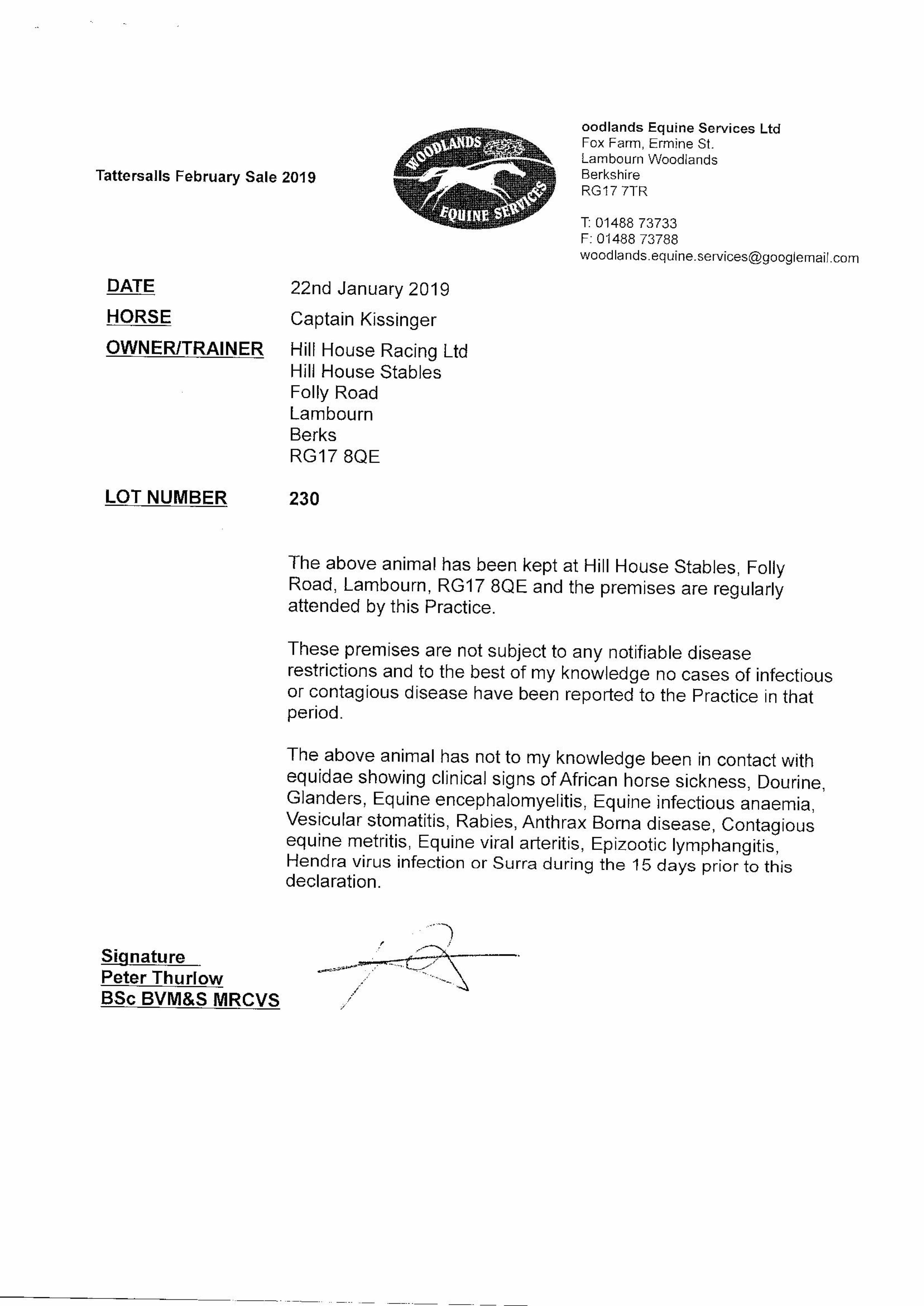 Consignor: Hill House Stables (Mrs J. Hughes)