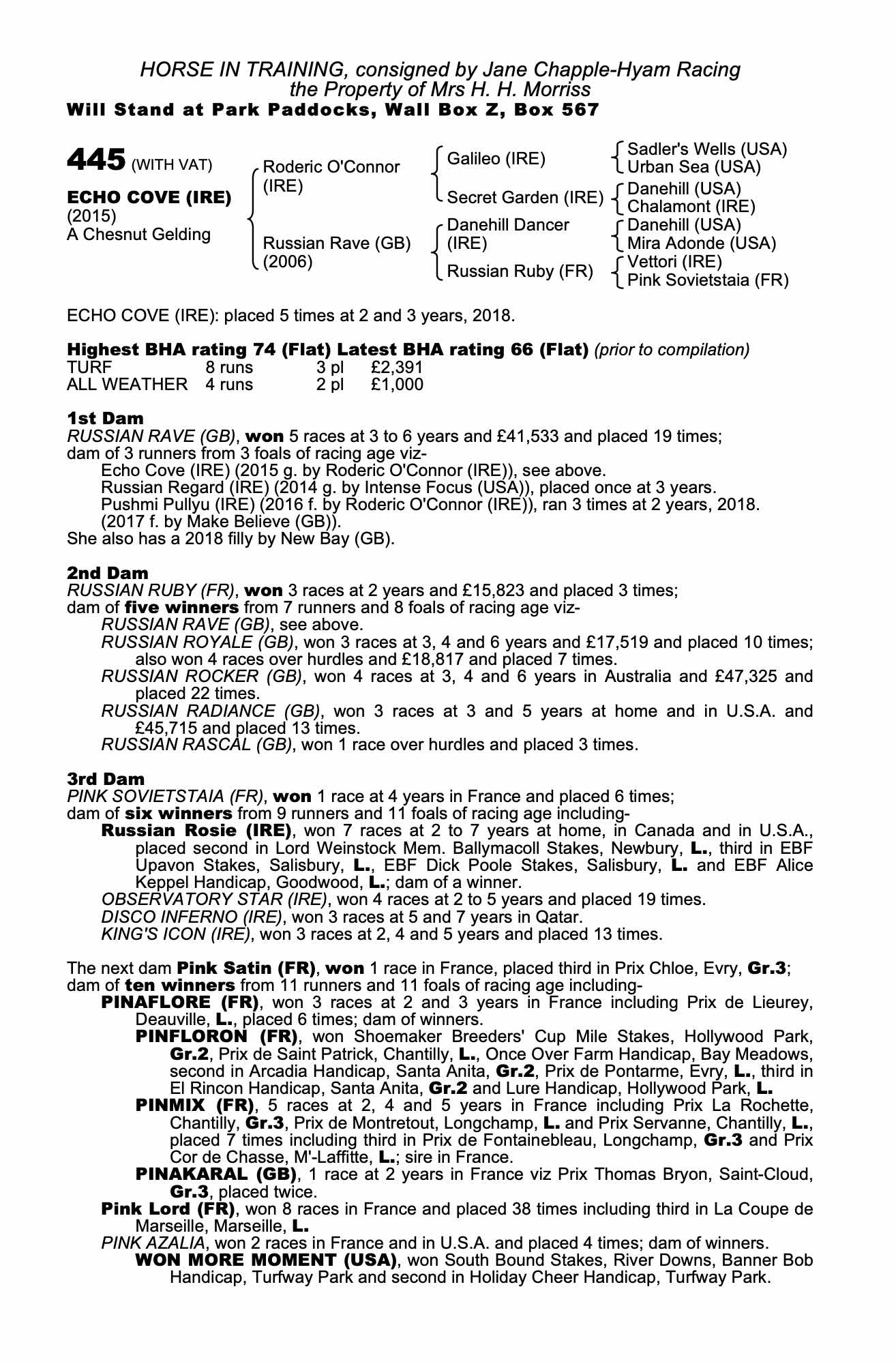 Consignor: Jane Chapple-Hyam Racing