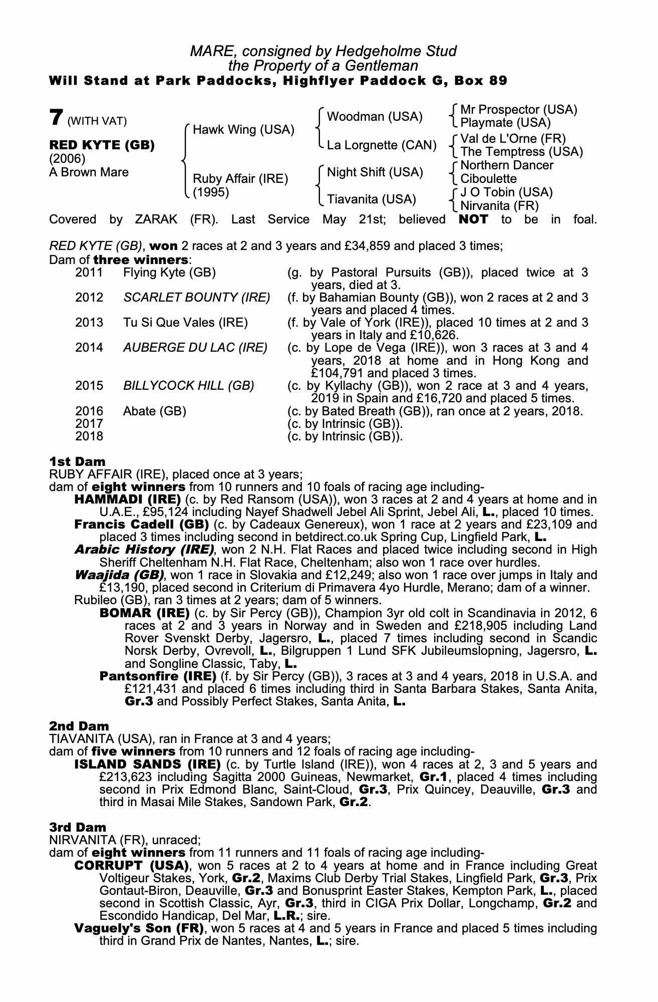 Consignor: Hedgeholme Stud