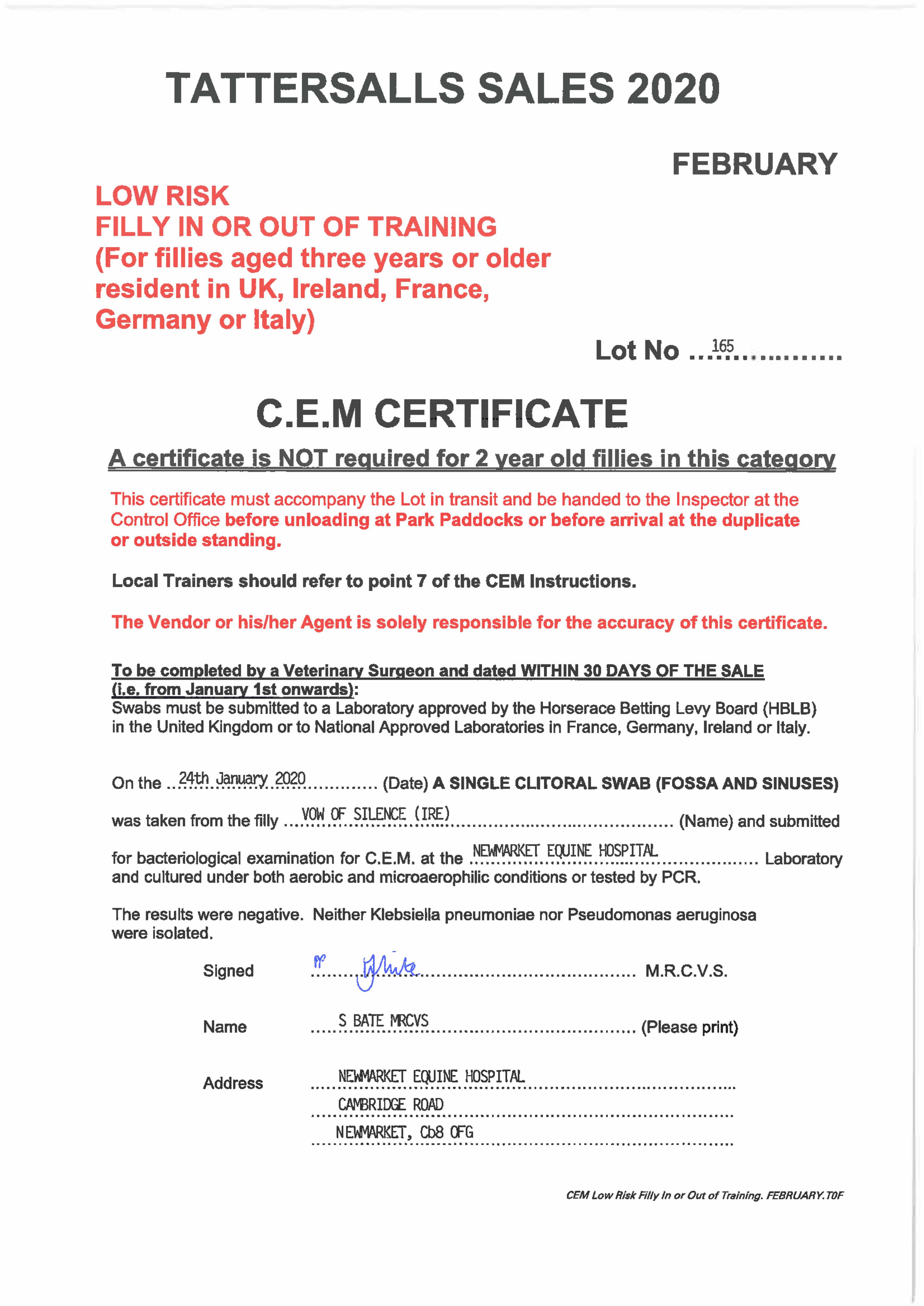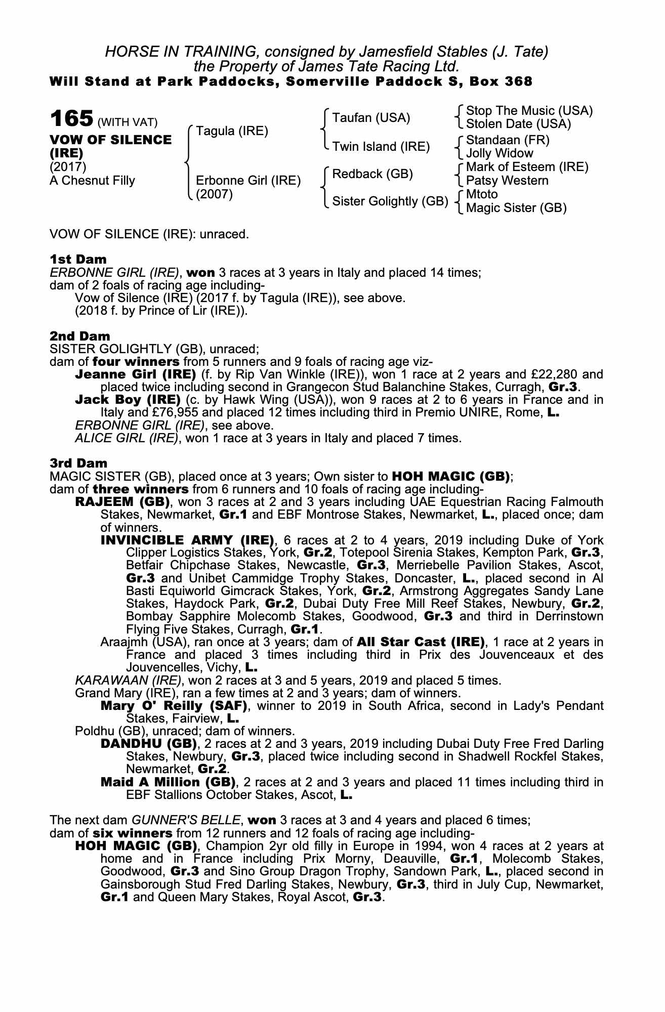 November Flat Sale 2021 lot 1375 G. 2020, Mr. Denis Corbett=>Lot Not Sold €4,800