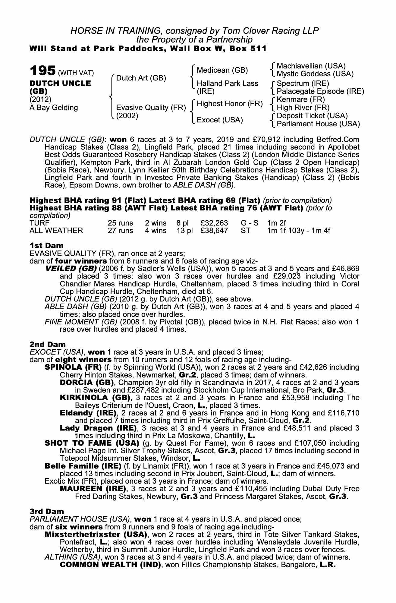 Consignor: Tom Clover Racing LLP