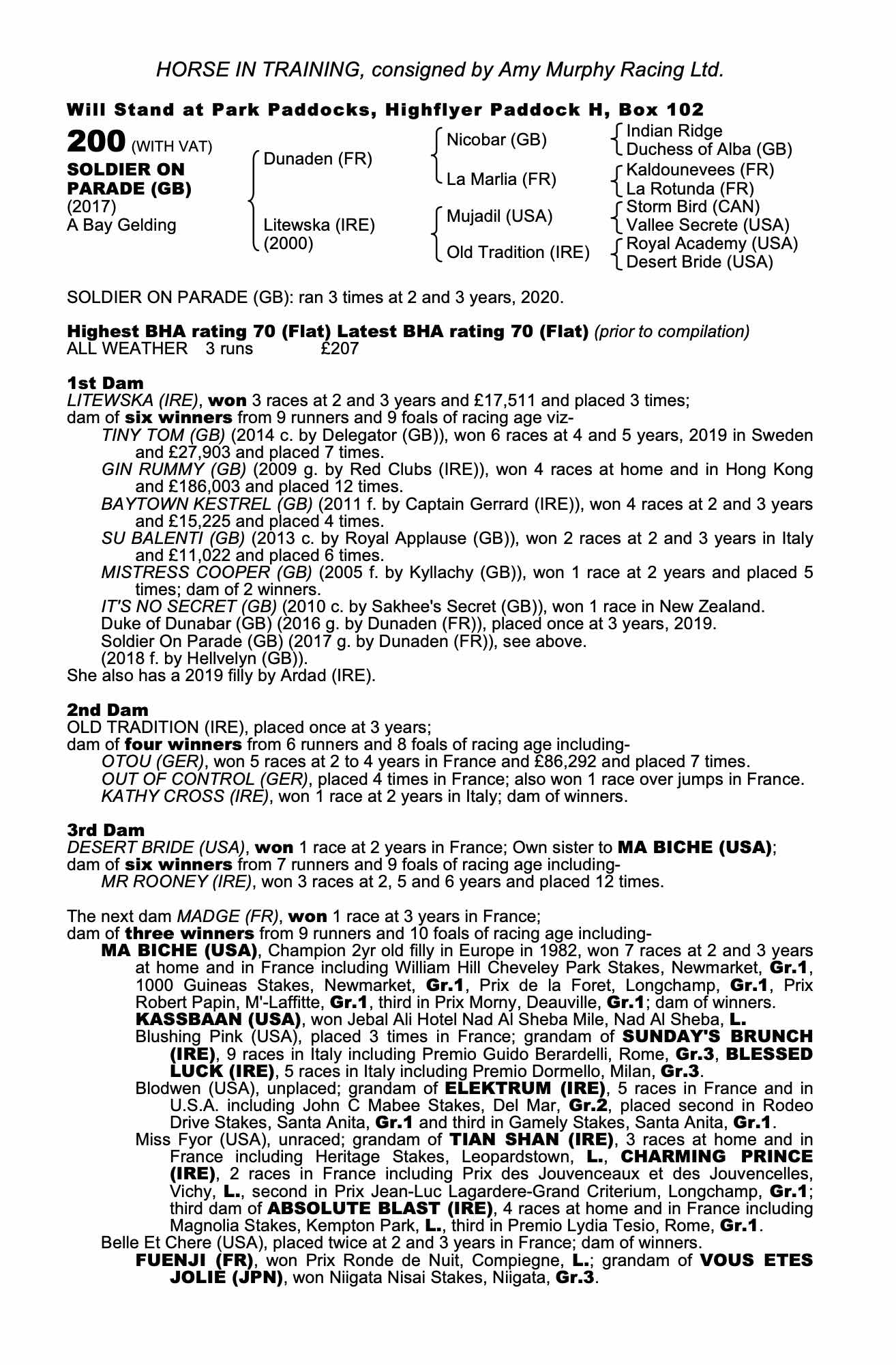 Consignor: Amy Murphy Racing Ltd.
