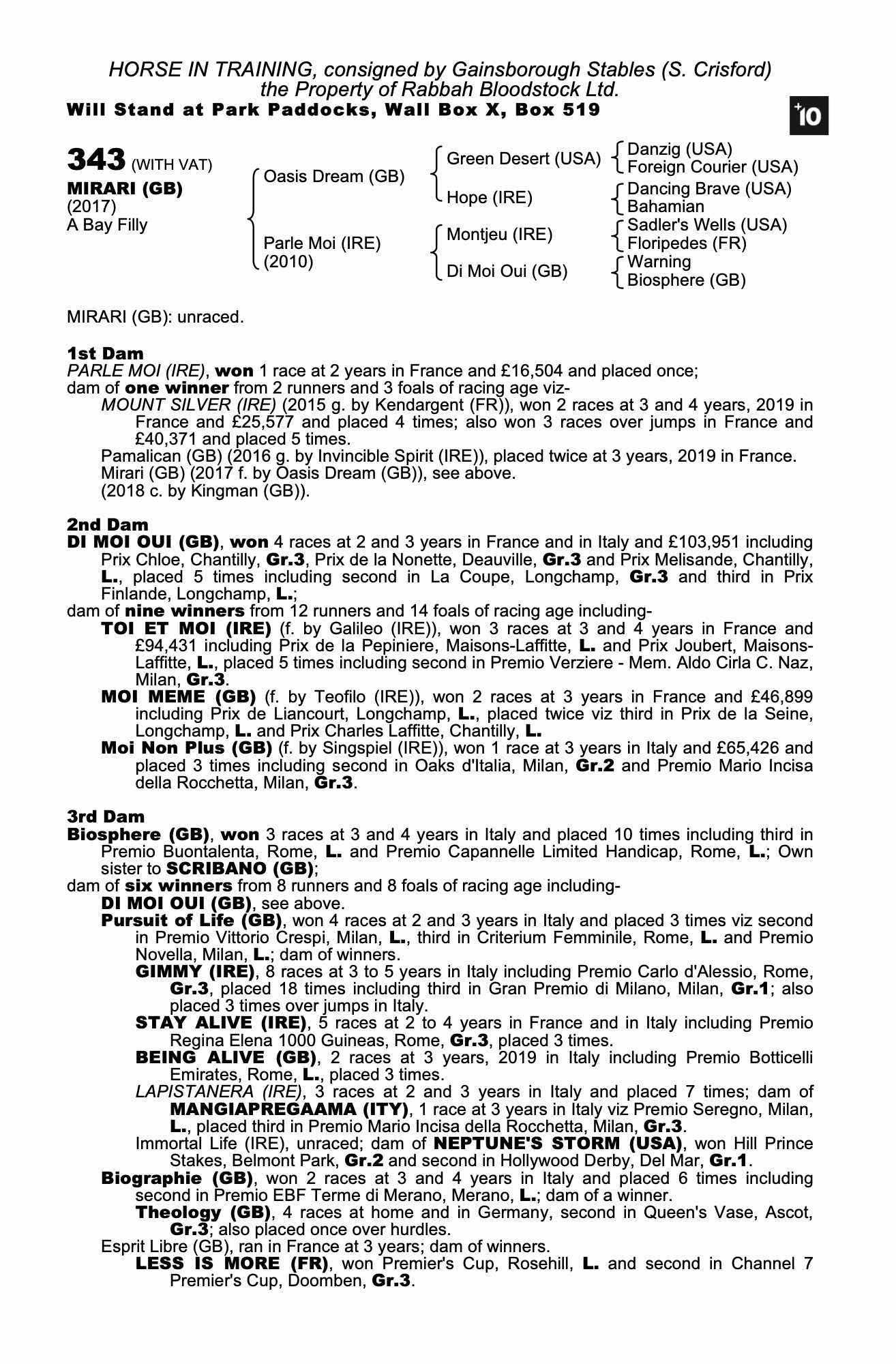 Consignor: Gainsborough Stables (S. Crisford)