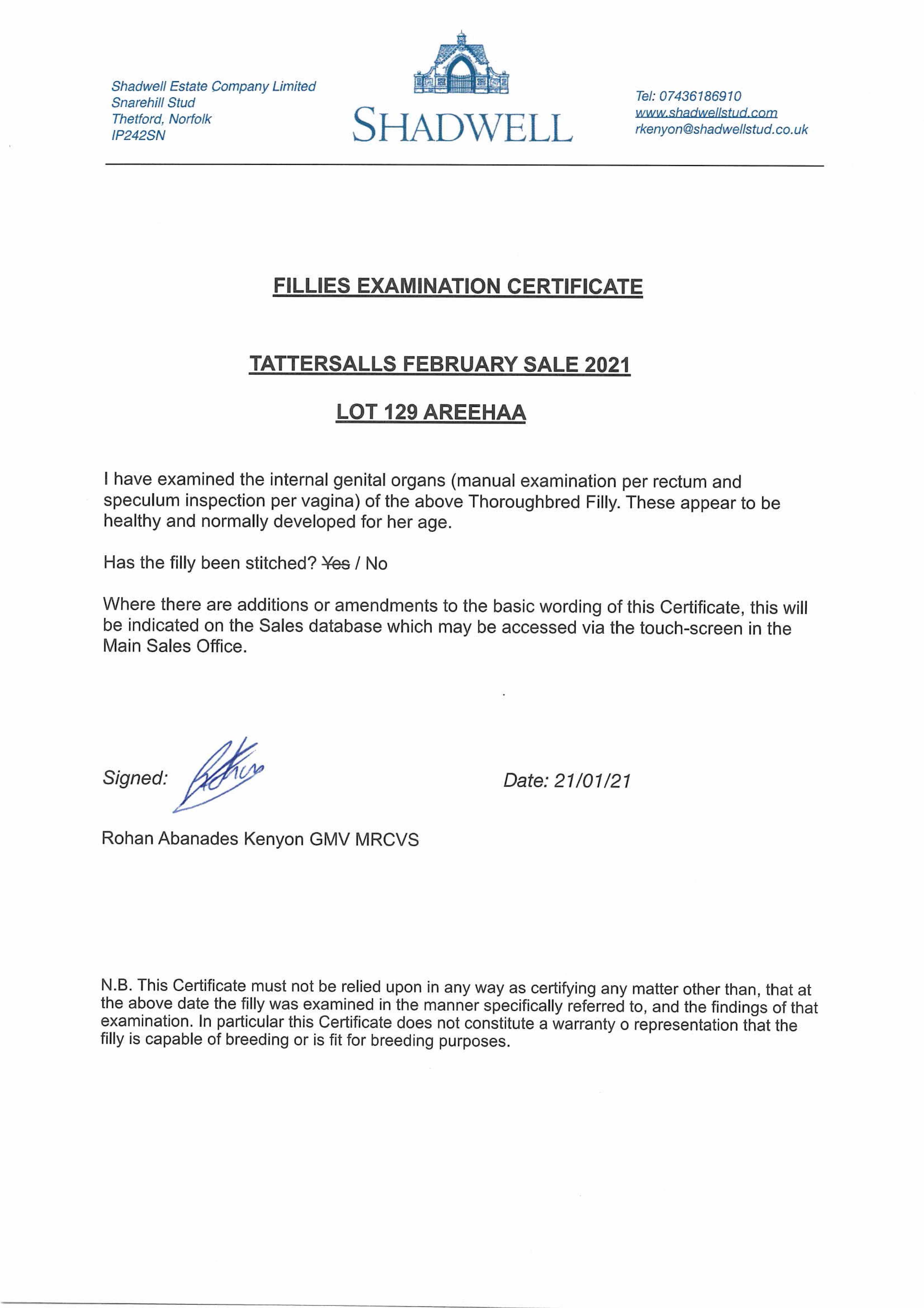 Contact: Dennis O'Brien ✆ +447885492528 ✉ dobrien@shadwellstud.co.uk