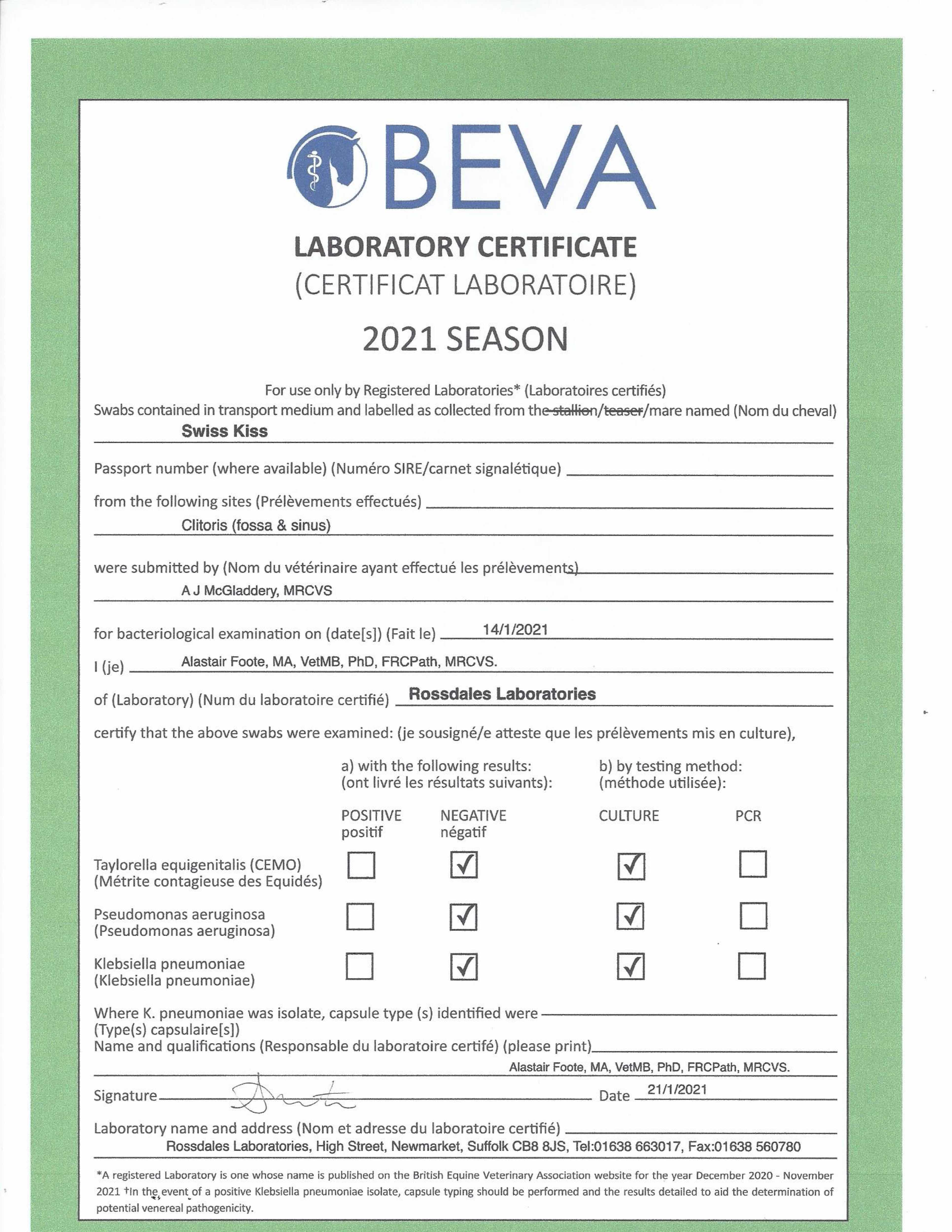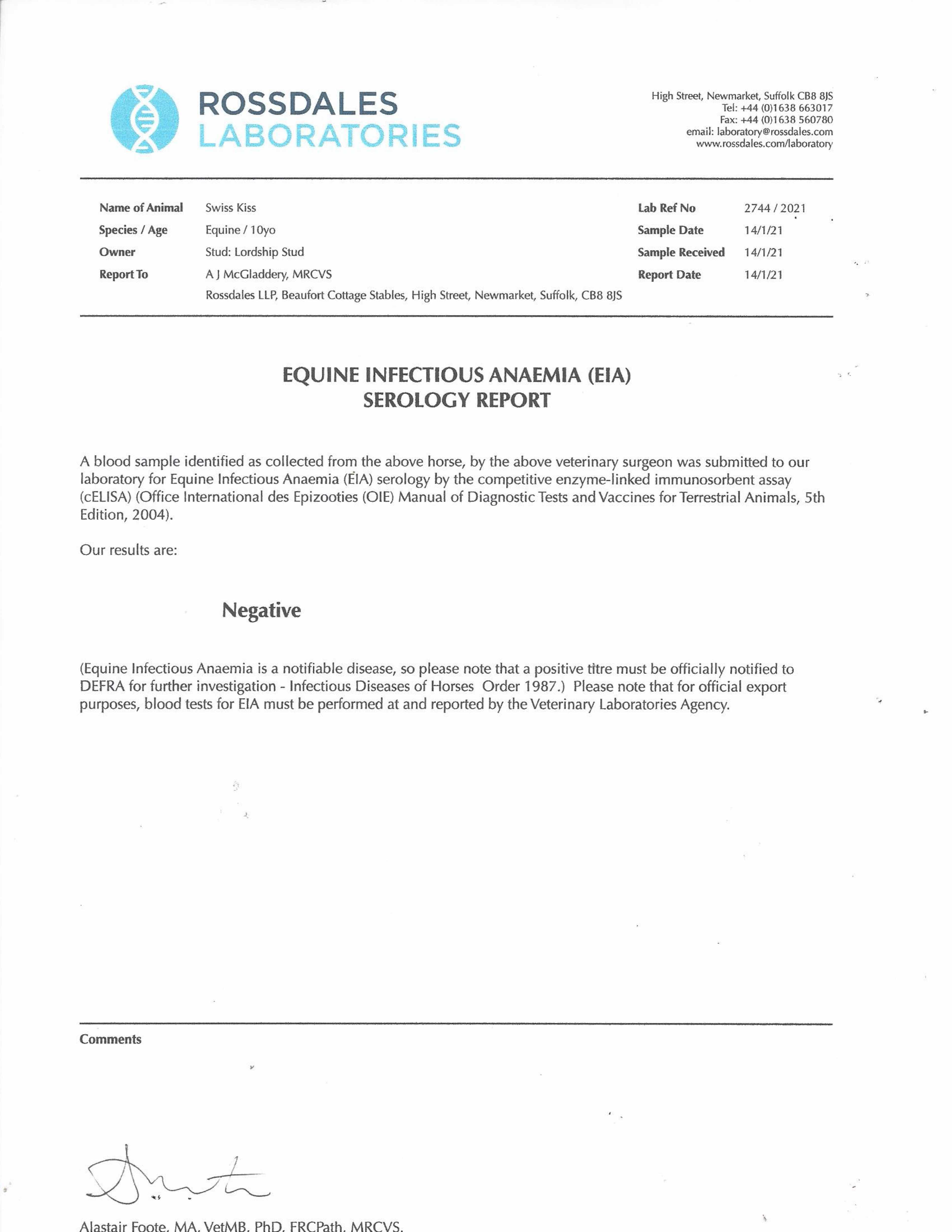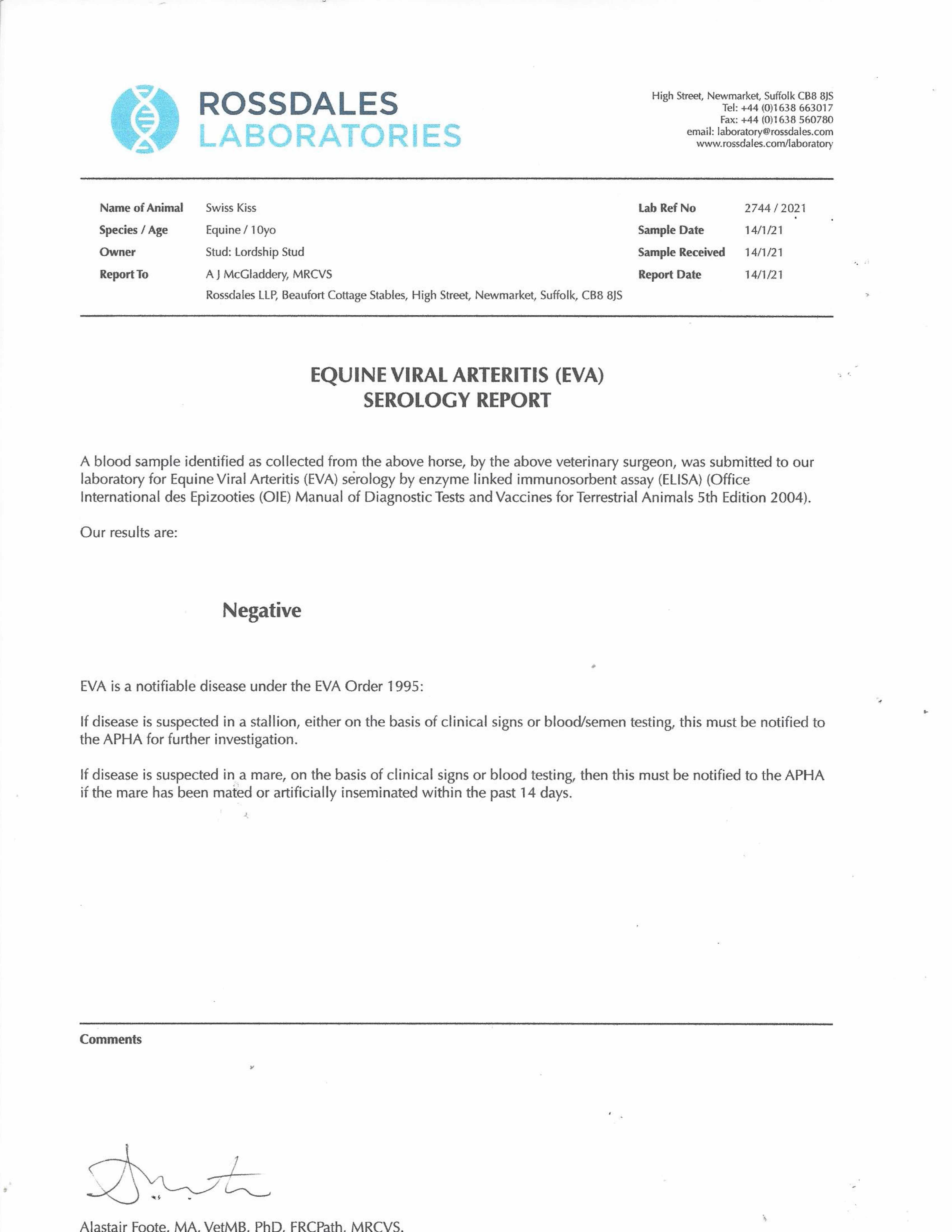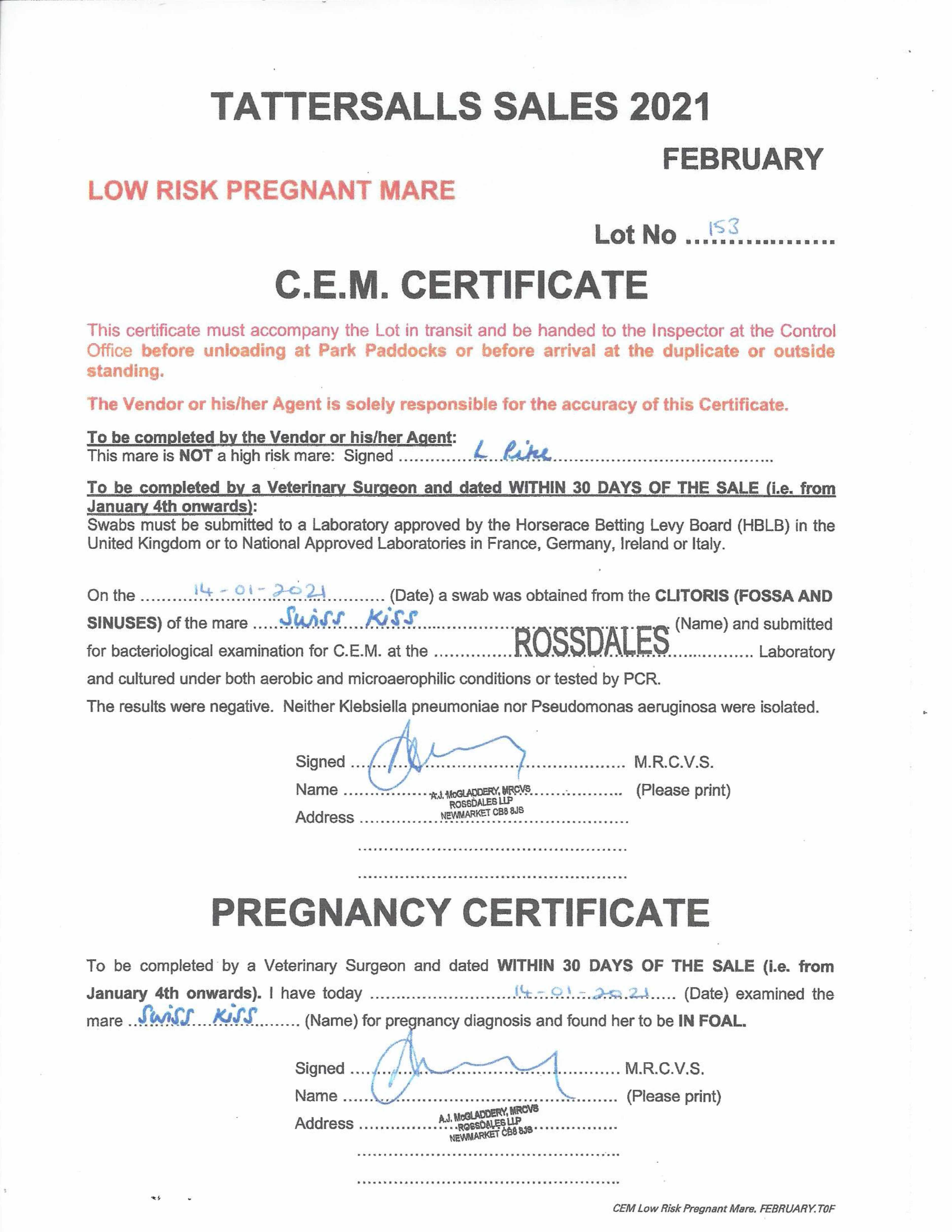 Online Charity Auction of Stallion Nominations lot 66 A Nomination to Swiss Spirit (GB) (H. by Invincible Spirit (IRE)), =>Bidding Closed £1,000