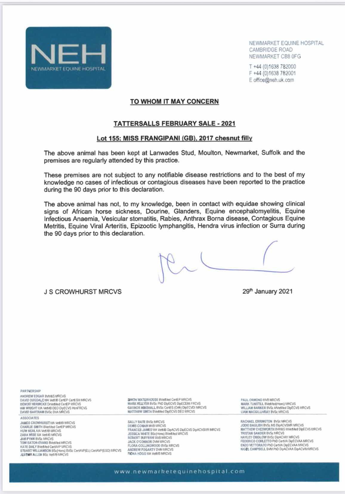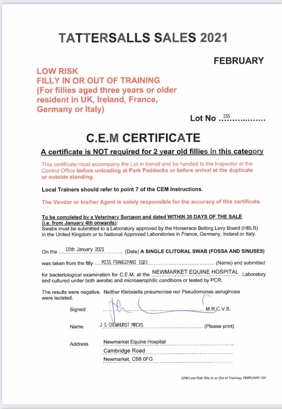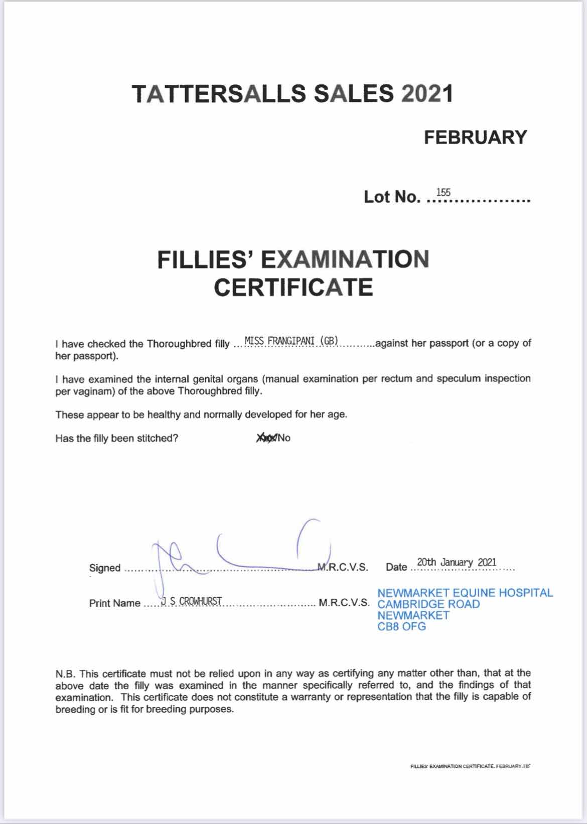 Location: Lanwades Stud, Newmarket (By Appointment only due to COVID 19 restrictions)