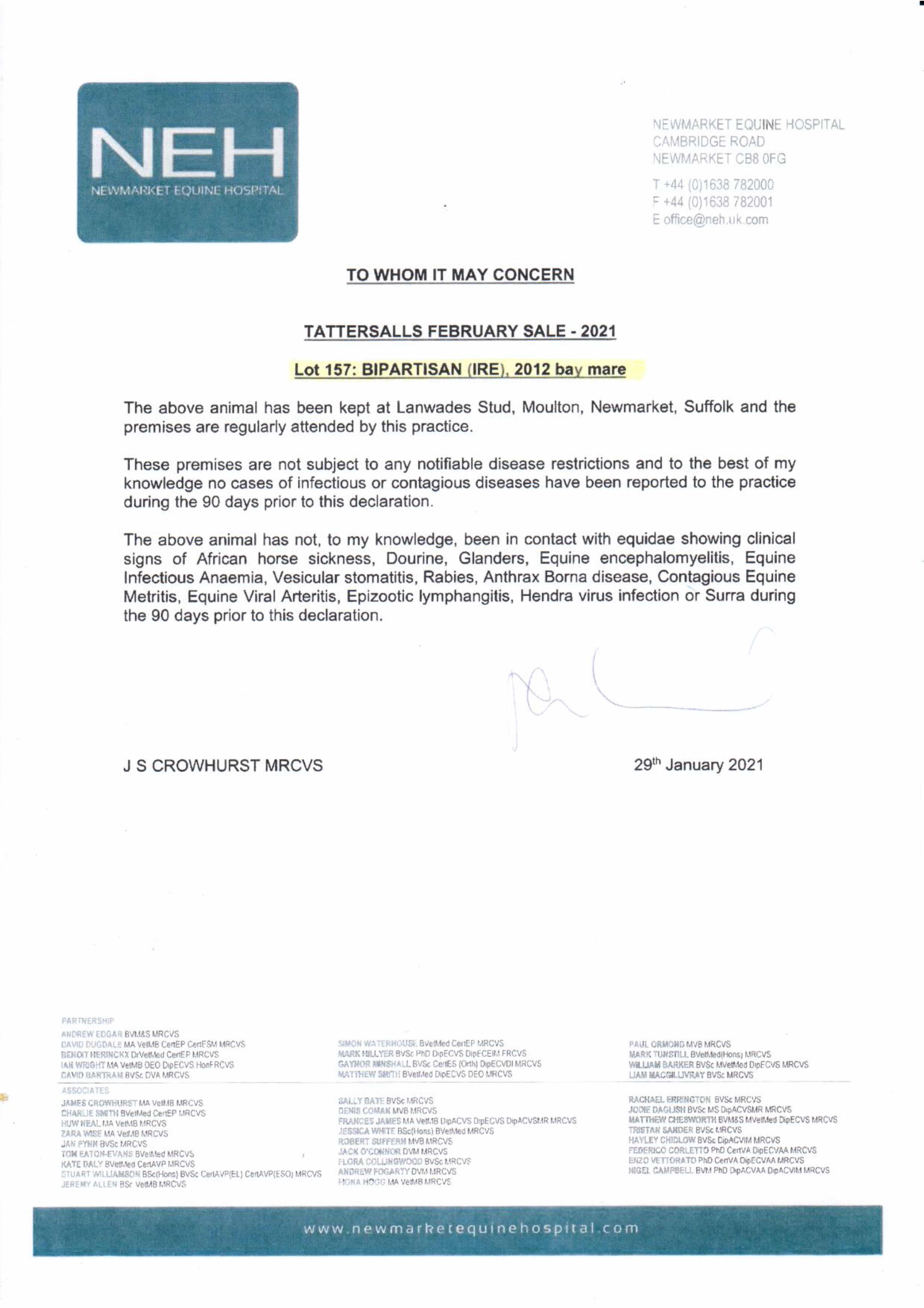 Location: Lanwades Stud, Newmarket (By appointment only due to COVID 19 restrictions)