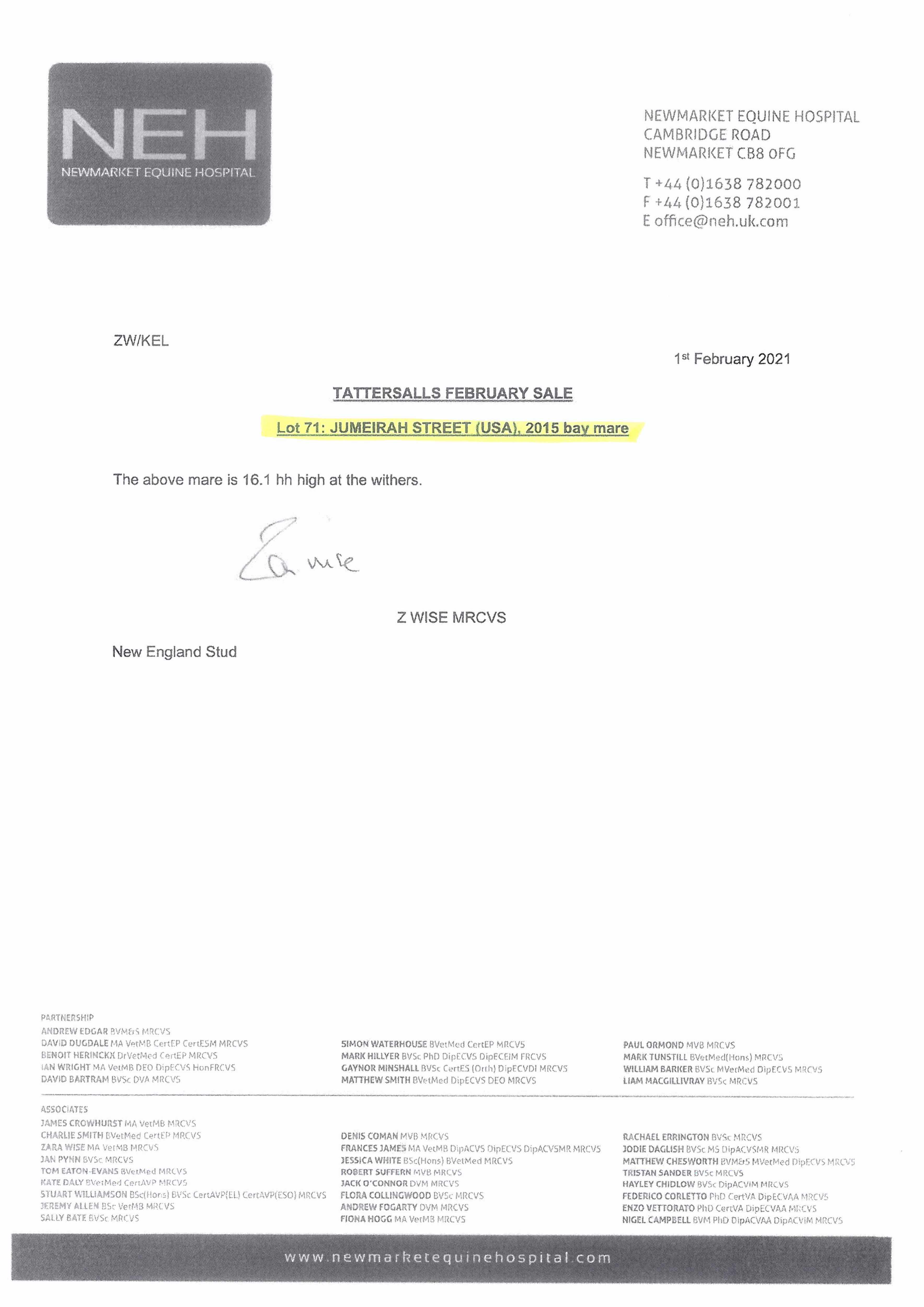 Vendor's Notes: Alternative contact: Laurence Carling, Stud Groom 07717731508