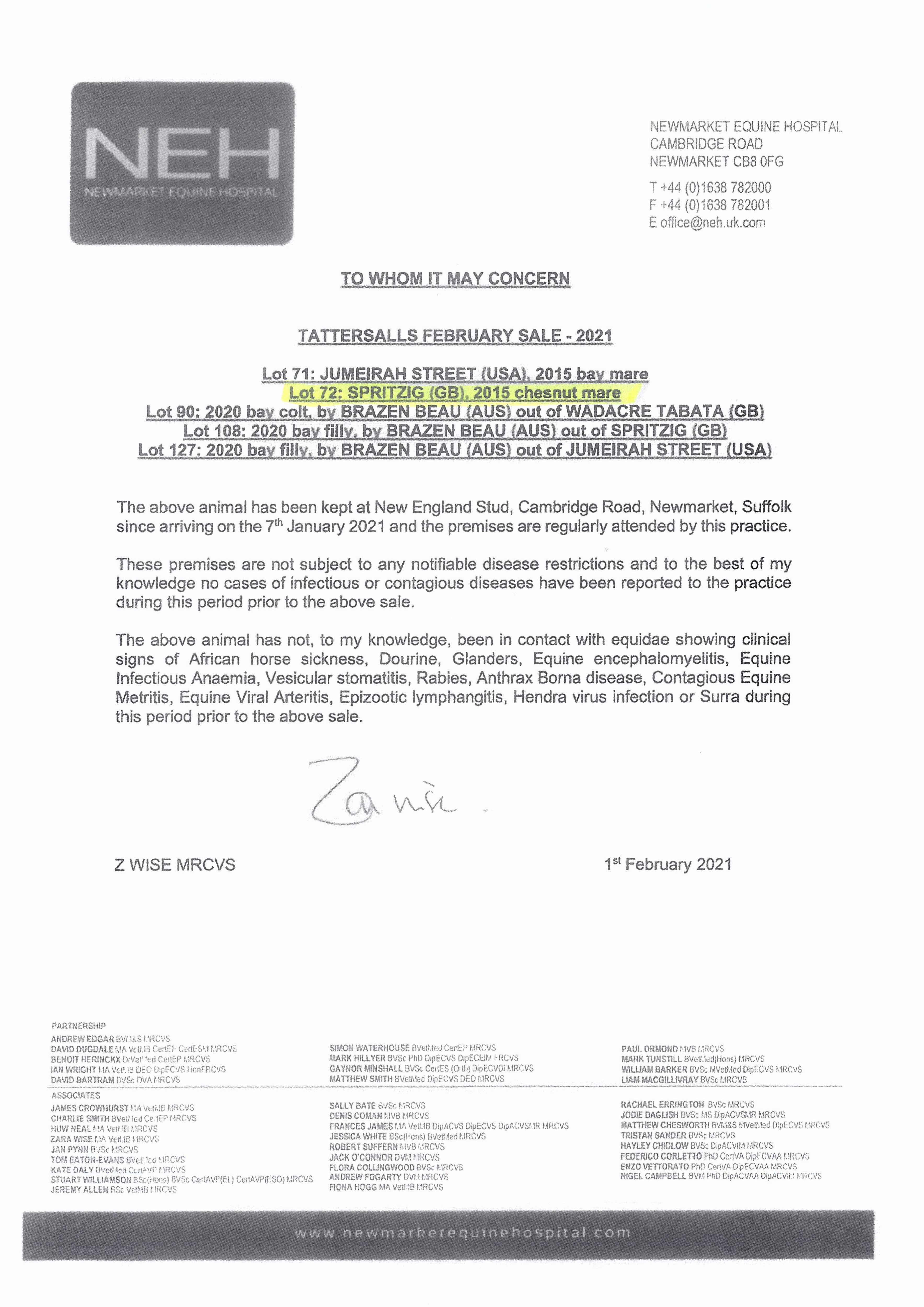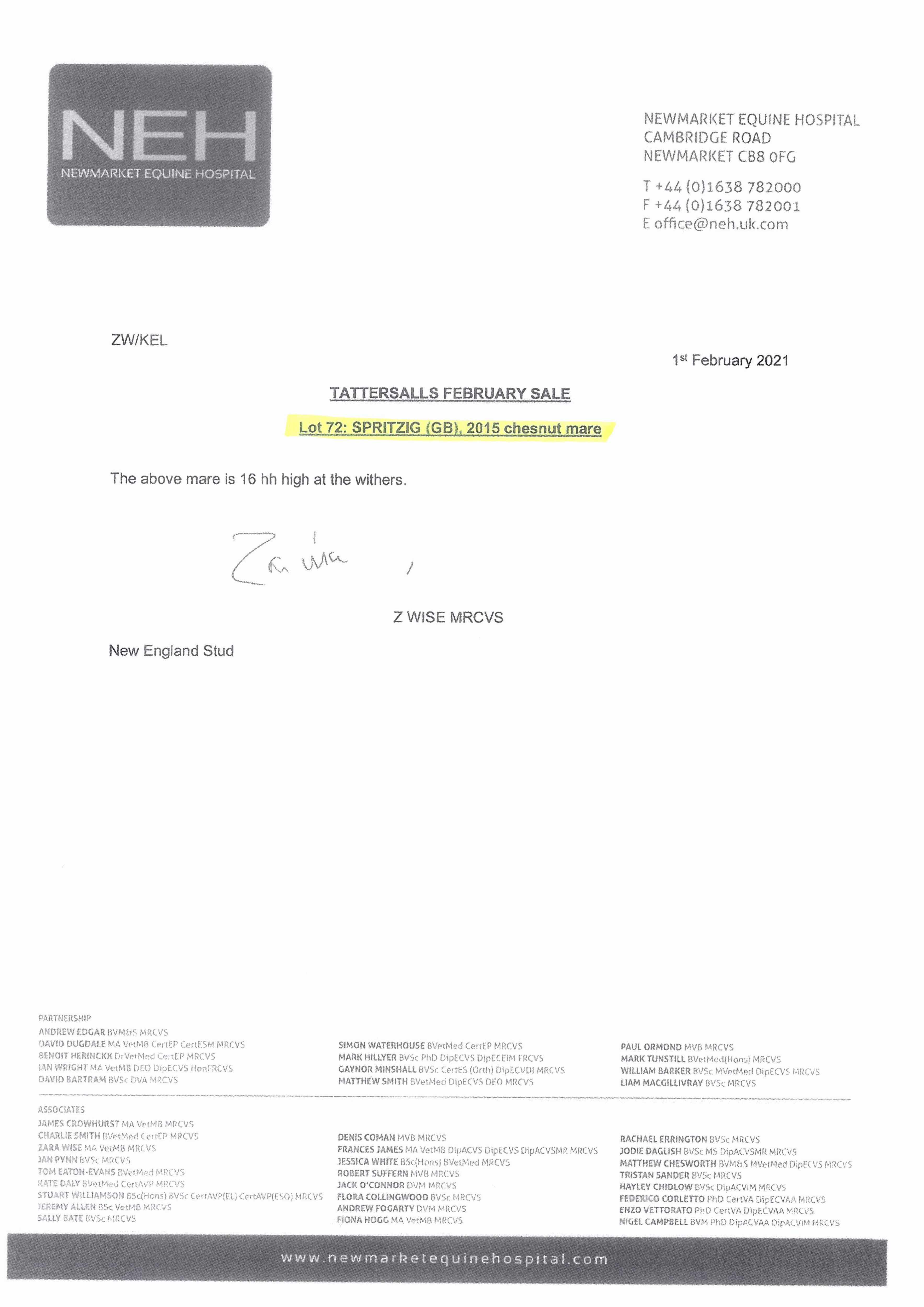 Vendor's Notes: Alternative contact: Laurence Carling, Stud Groom 07717731508