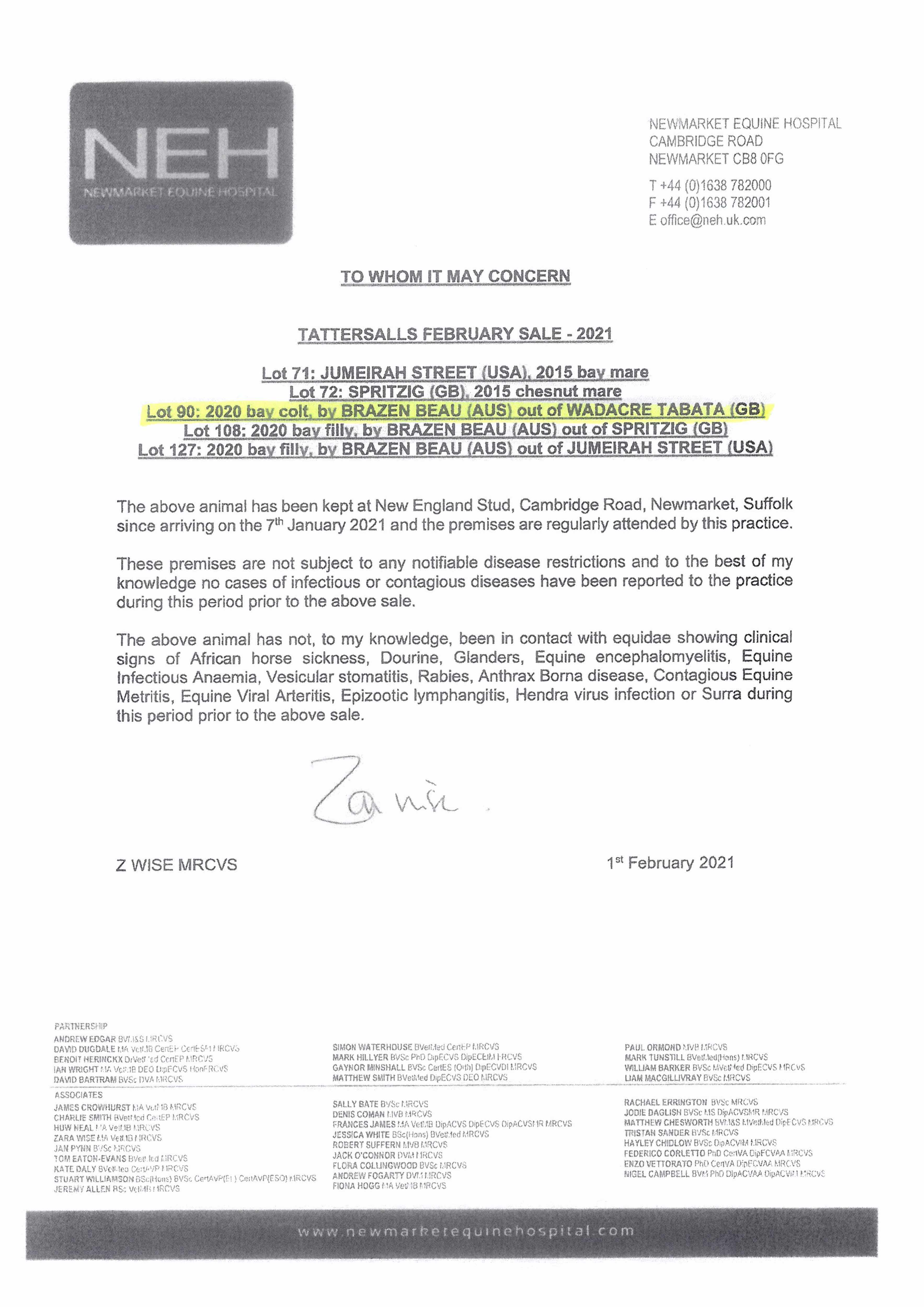 Vendor's Notes: Alternative contact: Laurence Carling, Stud Groom 07717731508