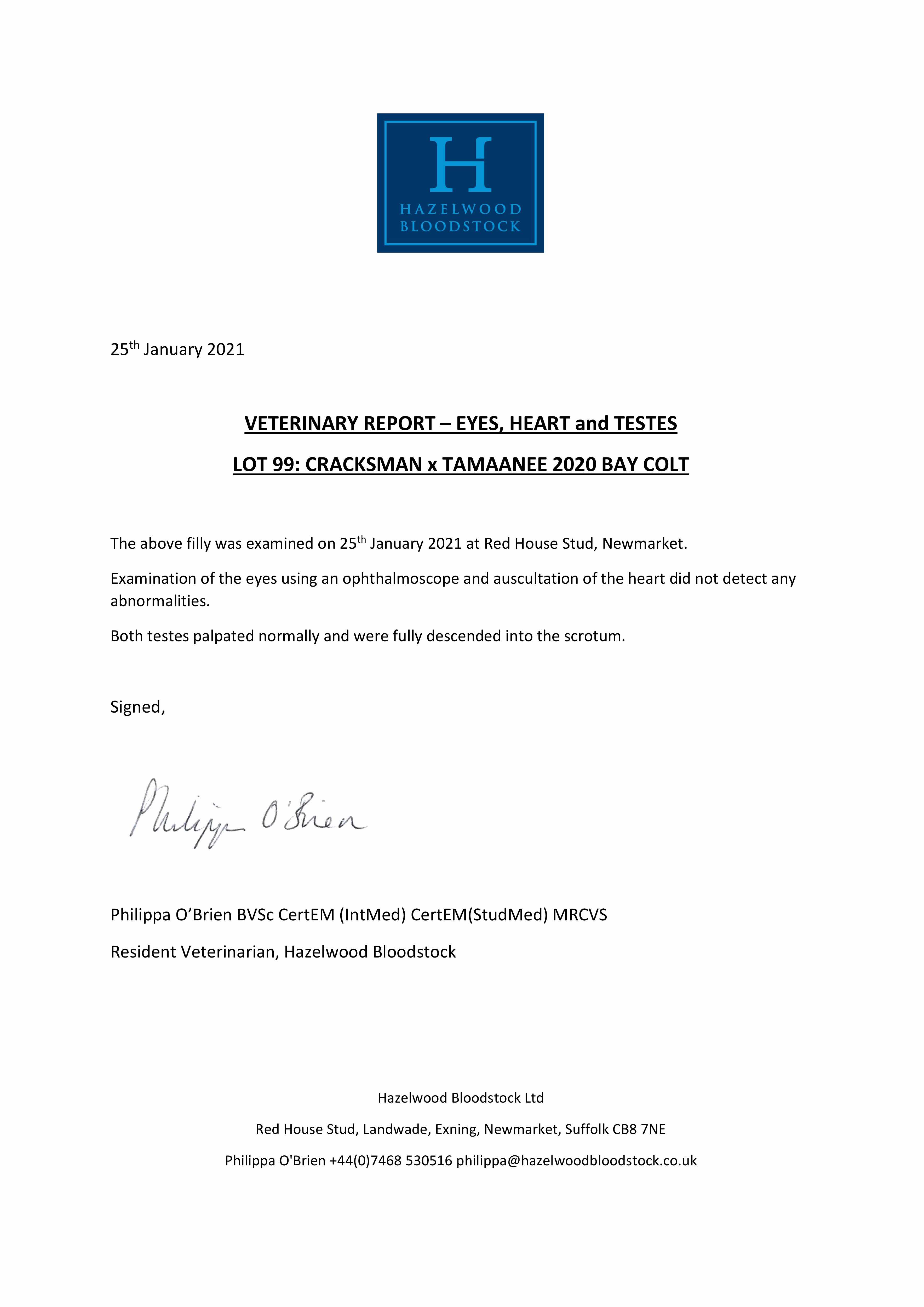 Contact: Adrian O'Brien ✆ +447468456488 ✉ adrian@hazelwoodbloodstock.co.uk