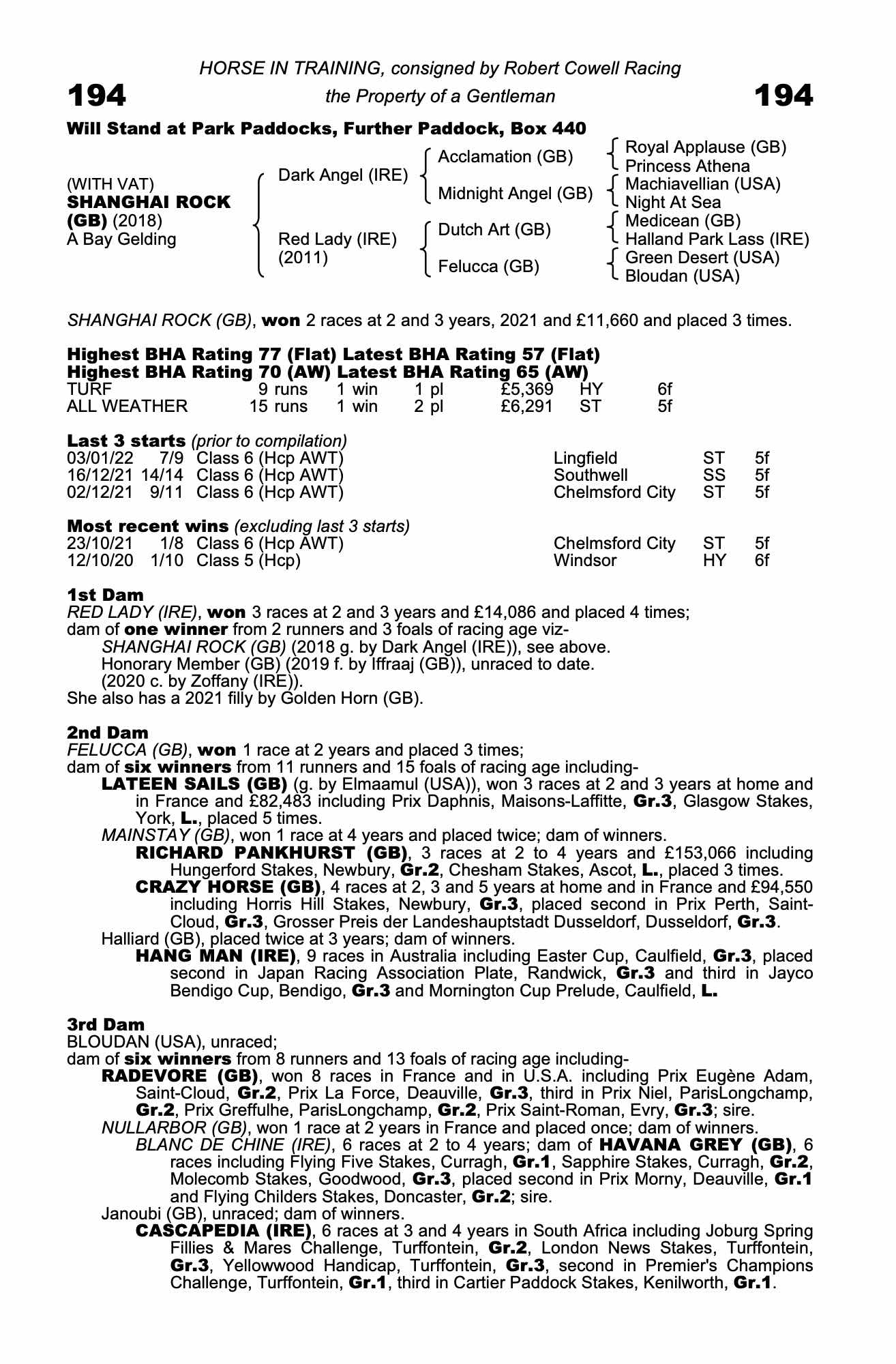 Consignor: Robert Cowell Racing