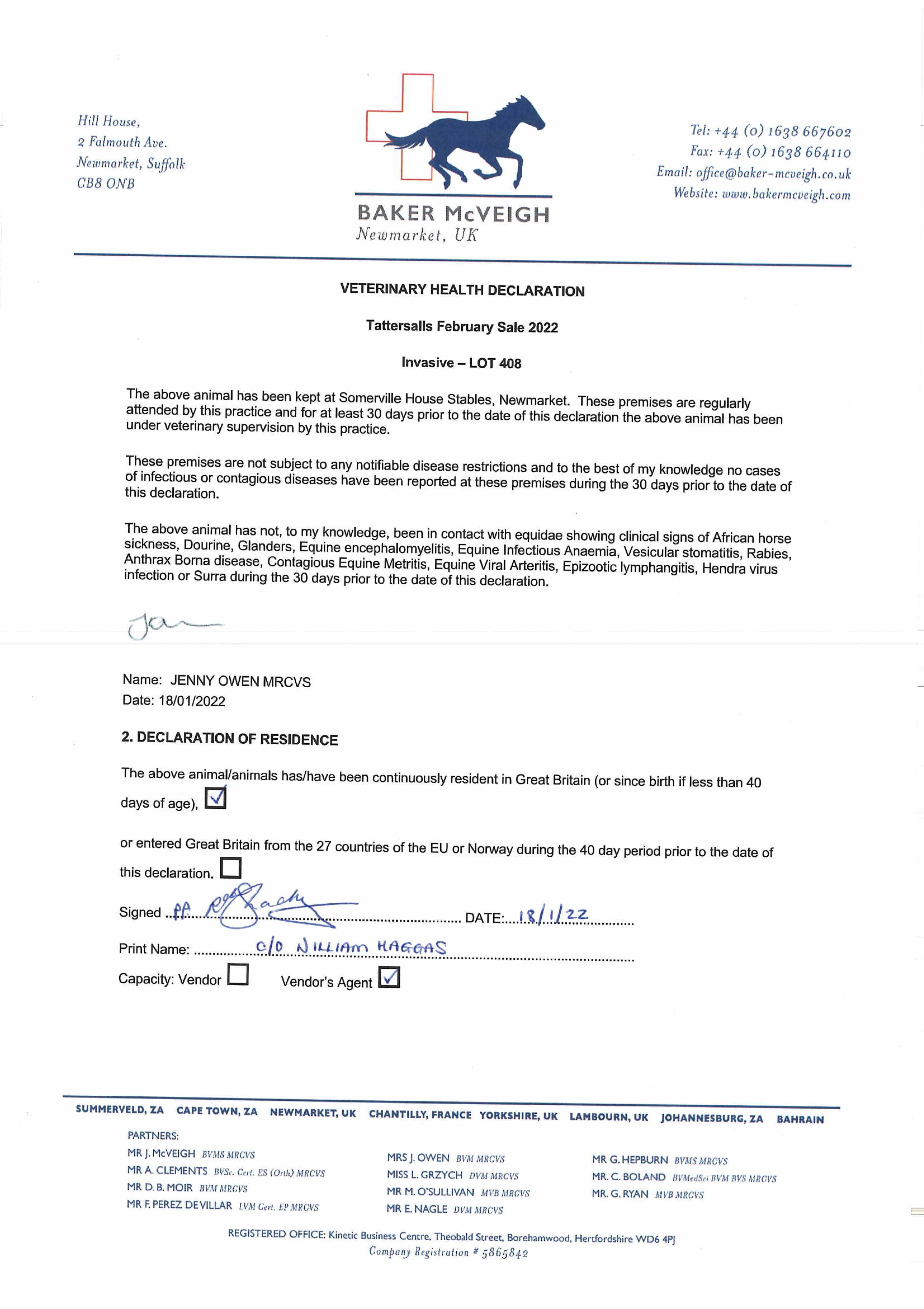 Consignor: Somerville Lodge Ltd. (W. Haggas), Agent