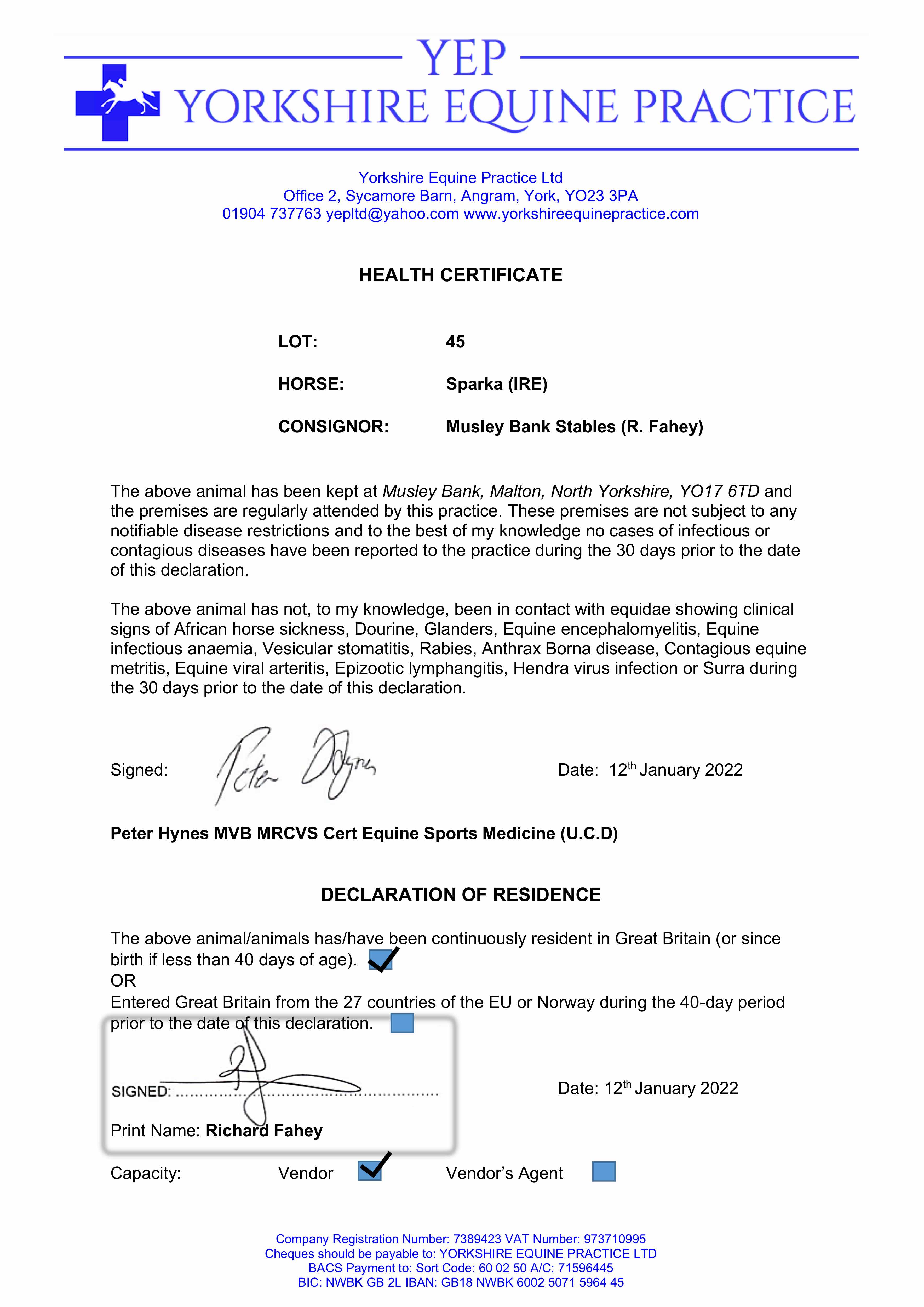 Health Certificate