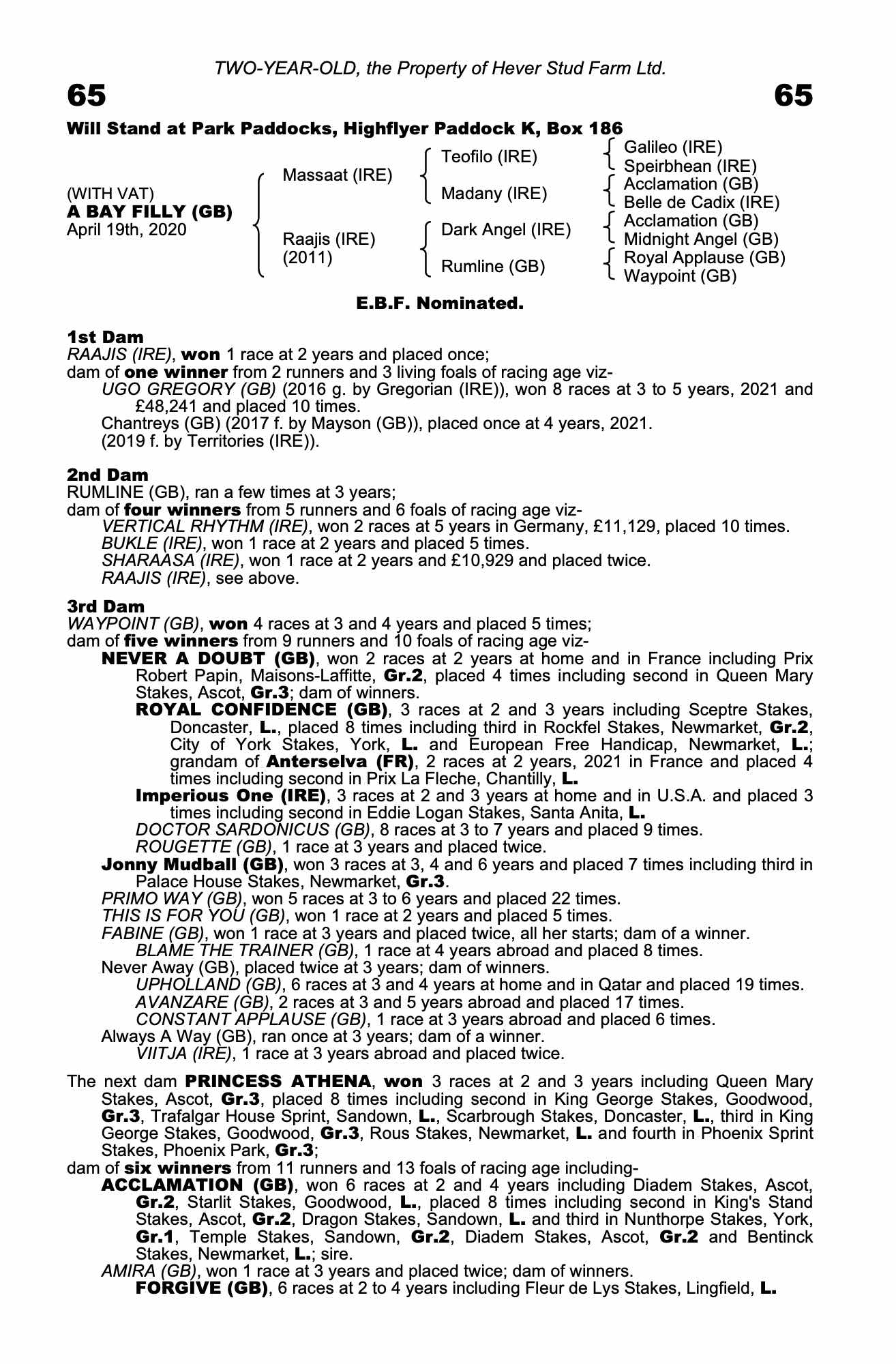 Consignor: Hever Stud Farm Ltd.