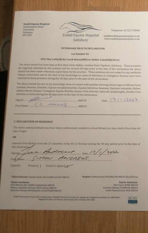 Online Sale - 23rd November 2023 lot 108 F. by Due Diligence (USA) 2022, New Barn Farm Stables=>Lot Not Sold 1,000 gns