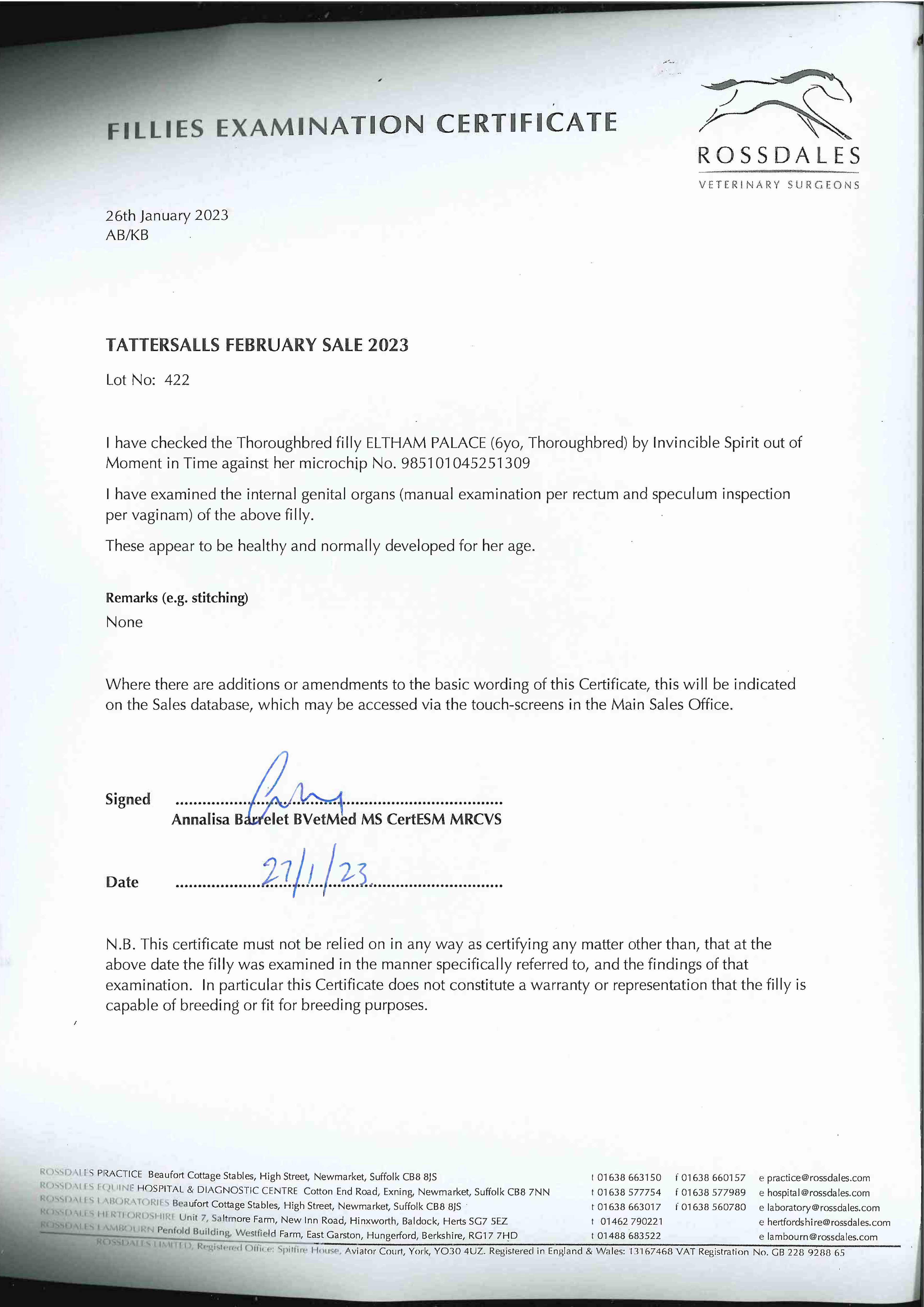 February Sale 2022 lot 179, Trillium Place Stables (D. Simcock)=>Vendor 7,000 gns