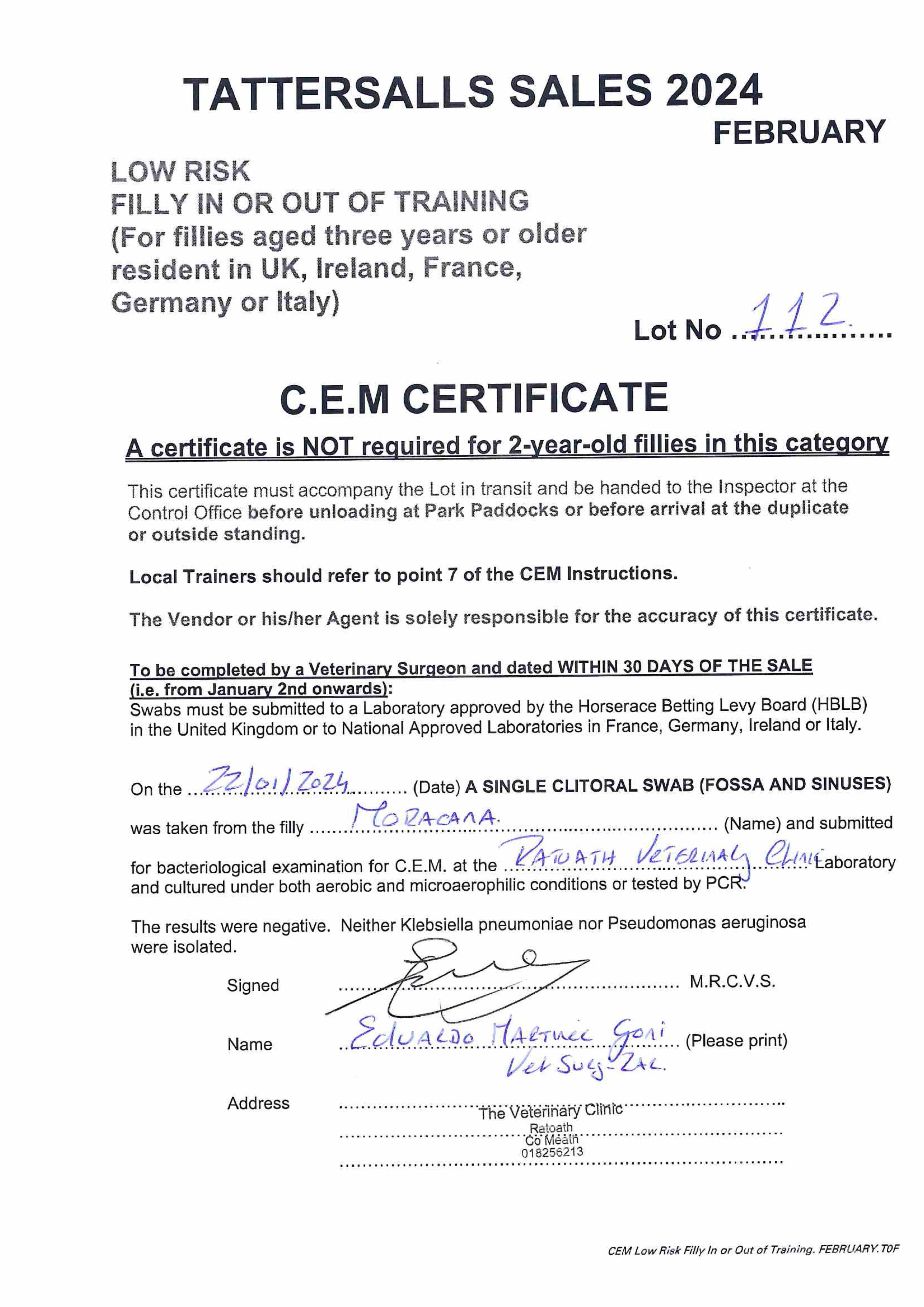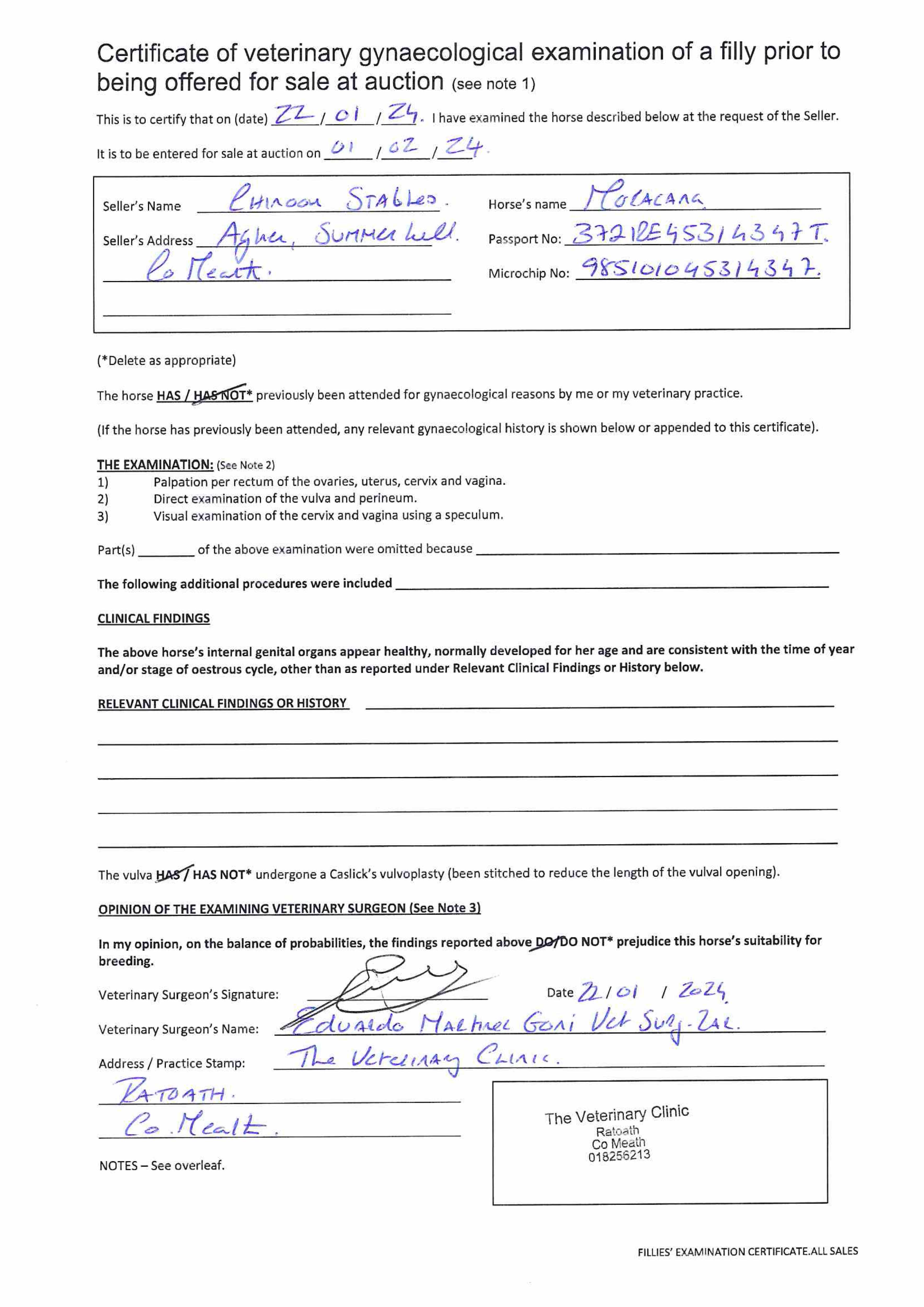 Fillies Examination Cert