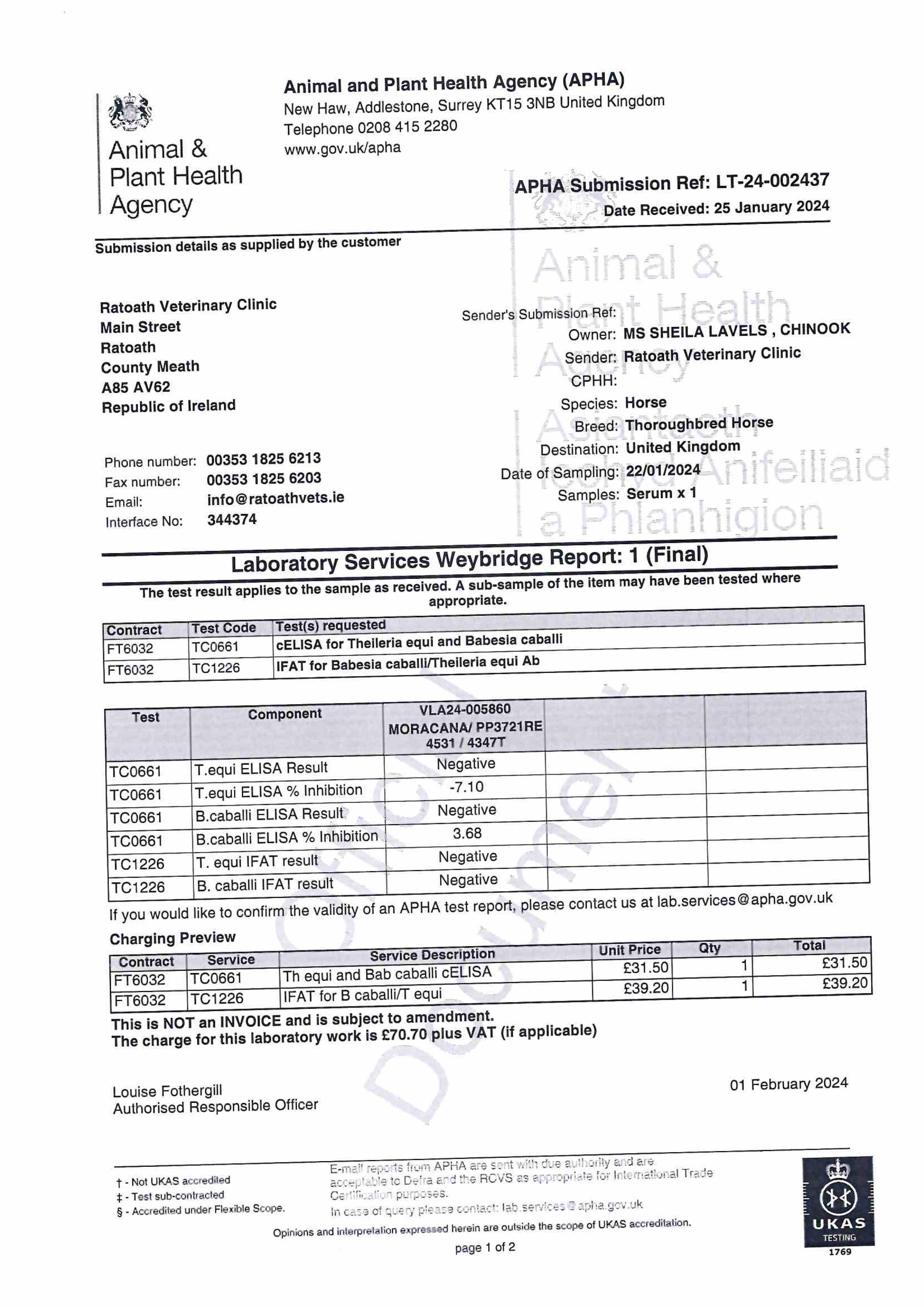 Piroplasmosis Certificate