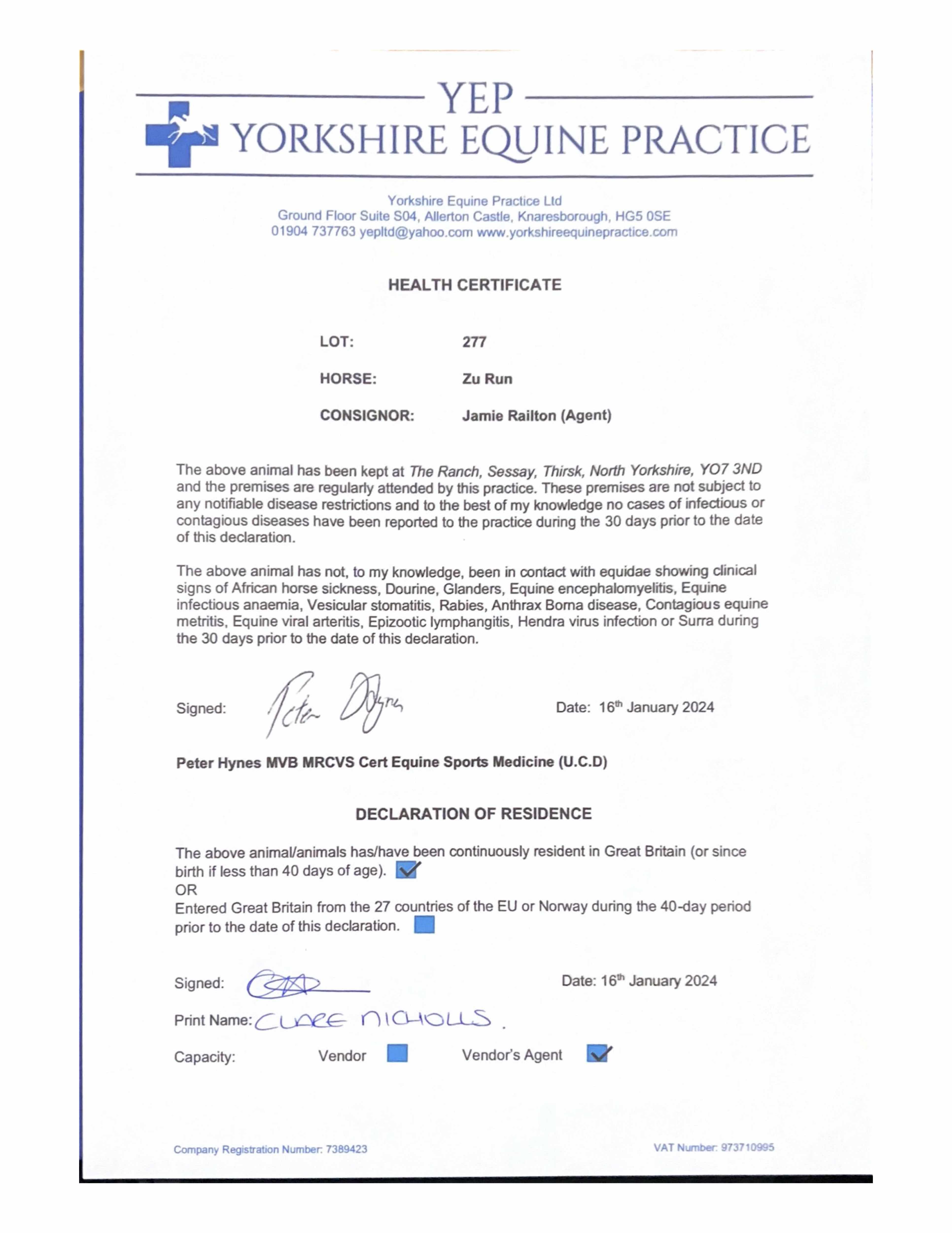 Consignor: Jamie Railton (Agent)