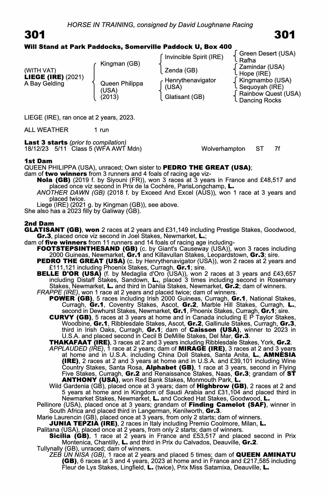 Consignor: David Loughnane Racing