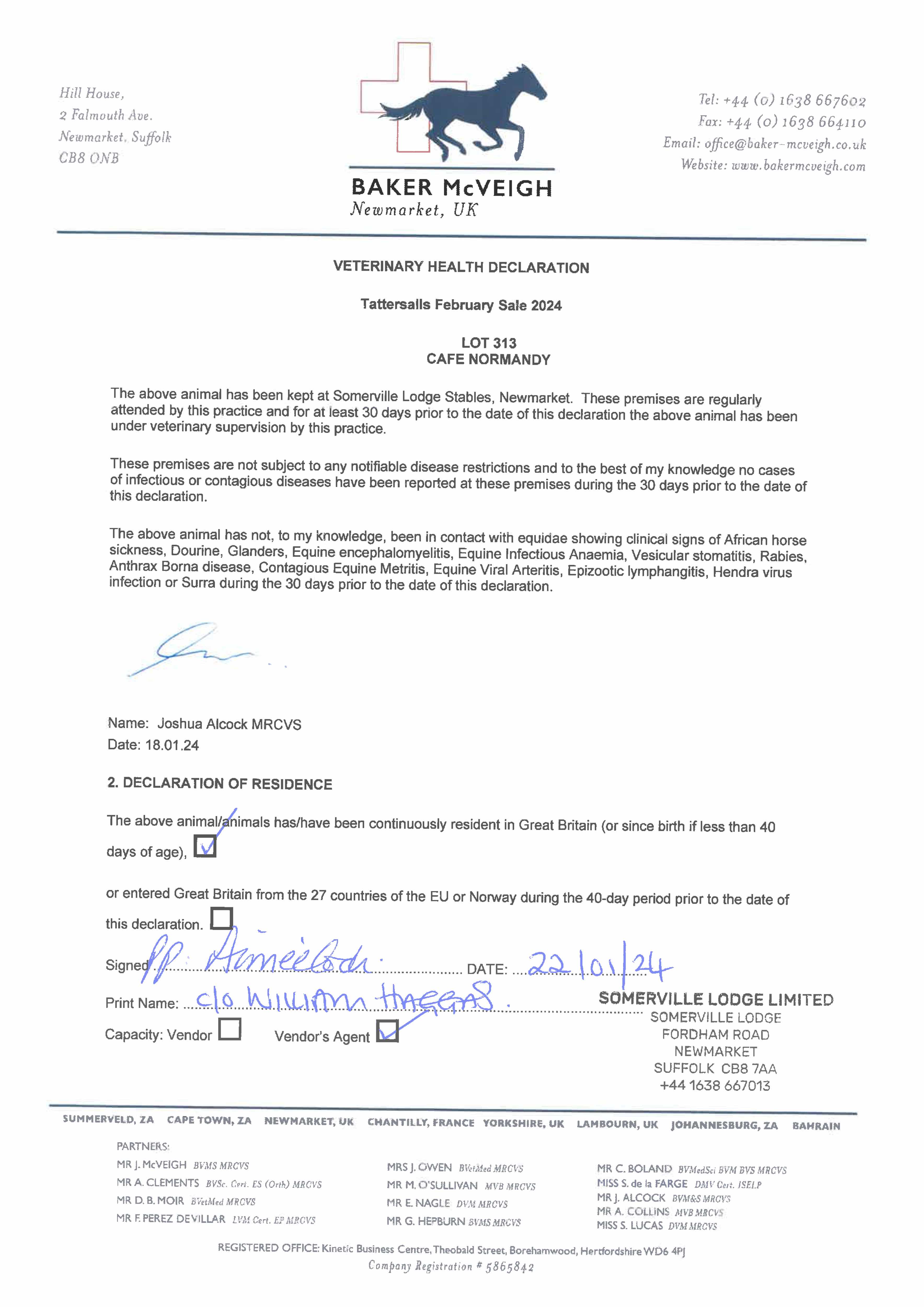 Consignor: Somerville Lodge Ltd. (W. Haggas), Agent