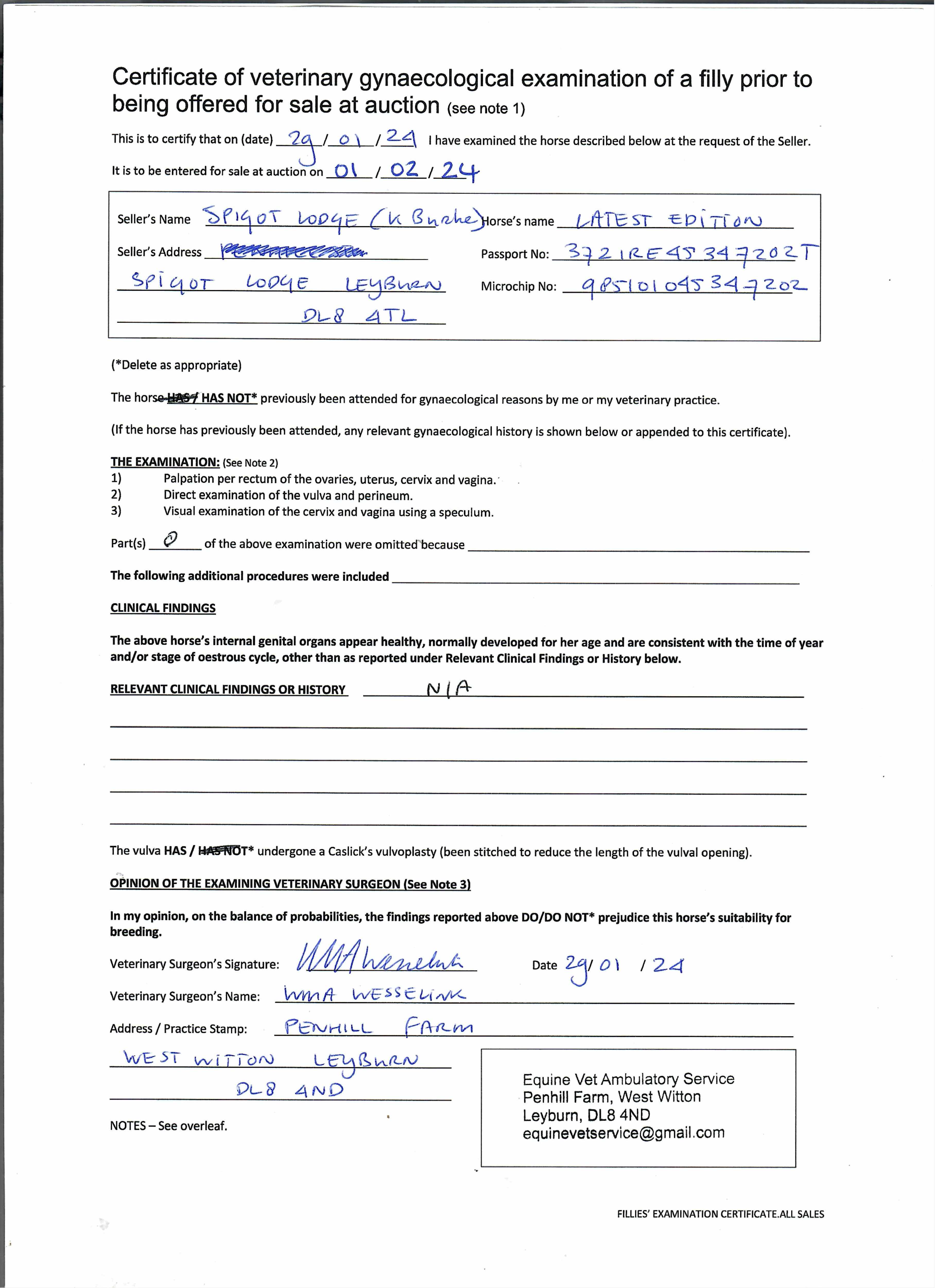 Consignor: Spigot Lodge Stables (K. Burke)