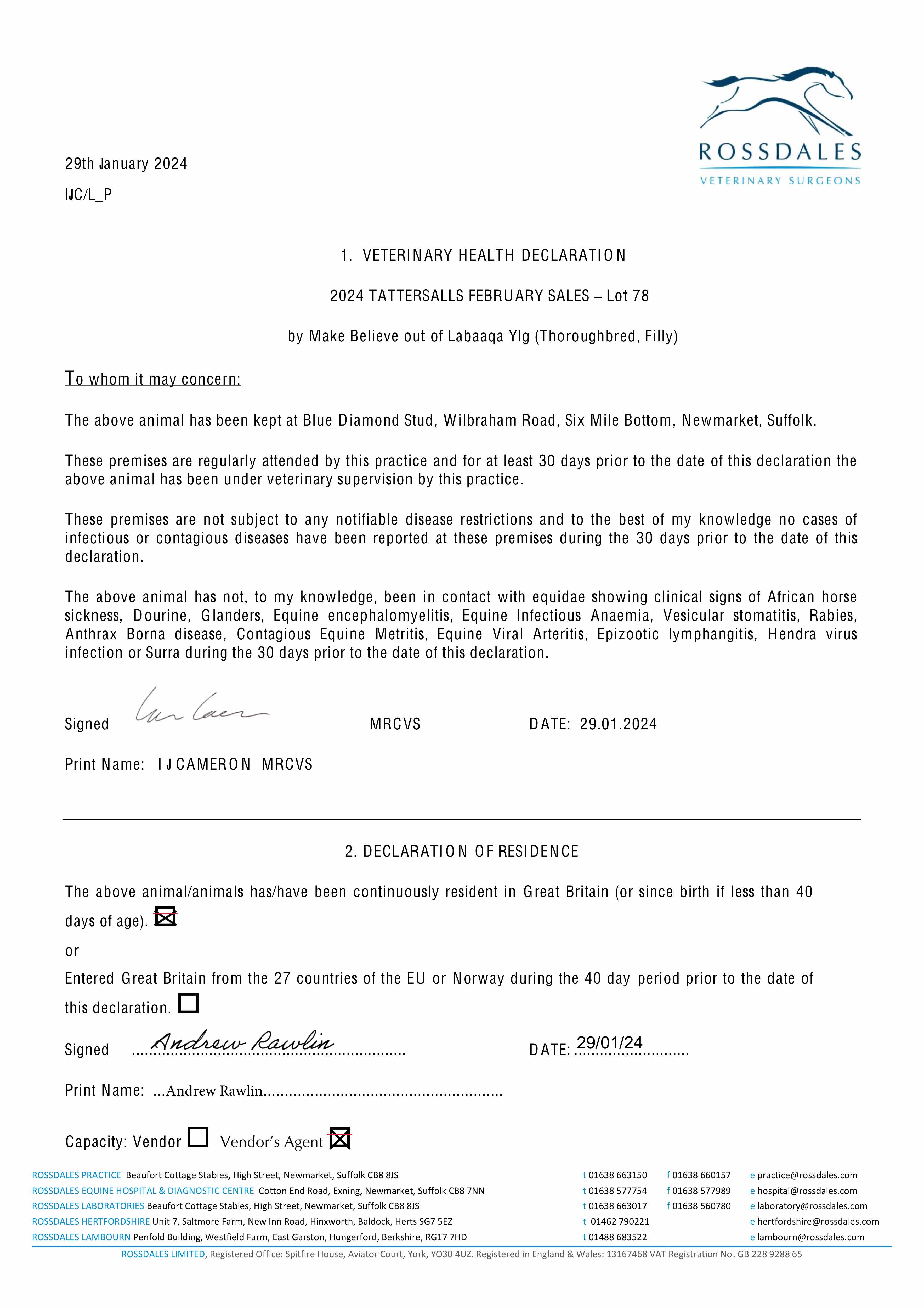Consignor: Blue Diamond Stud Farm (UK) Ltd.