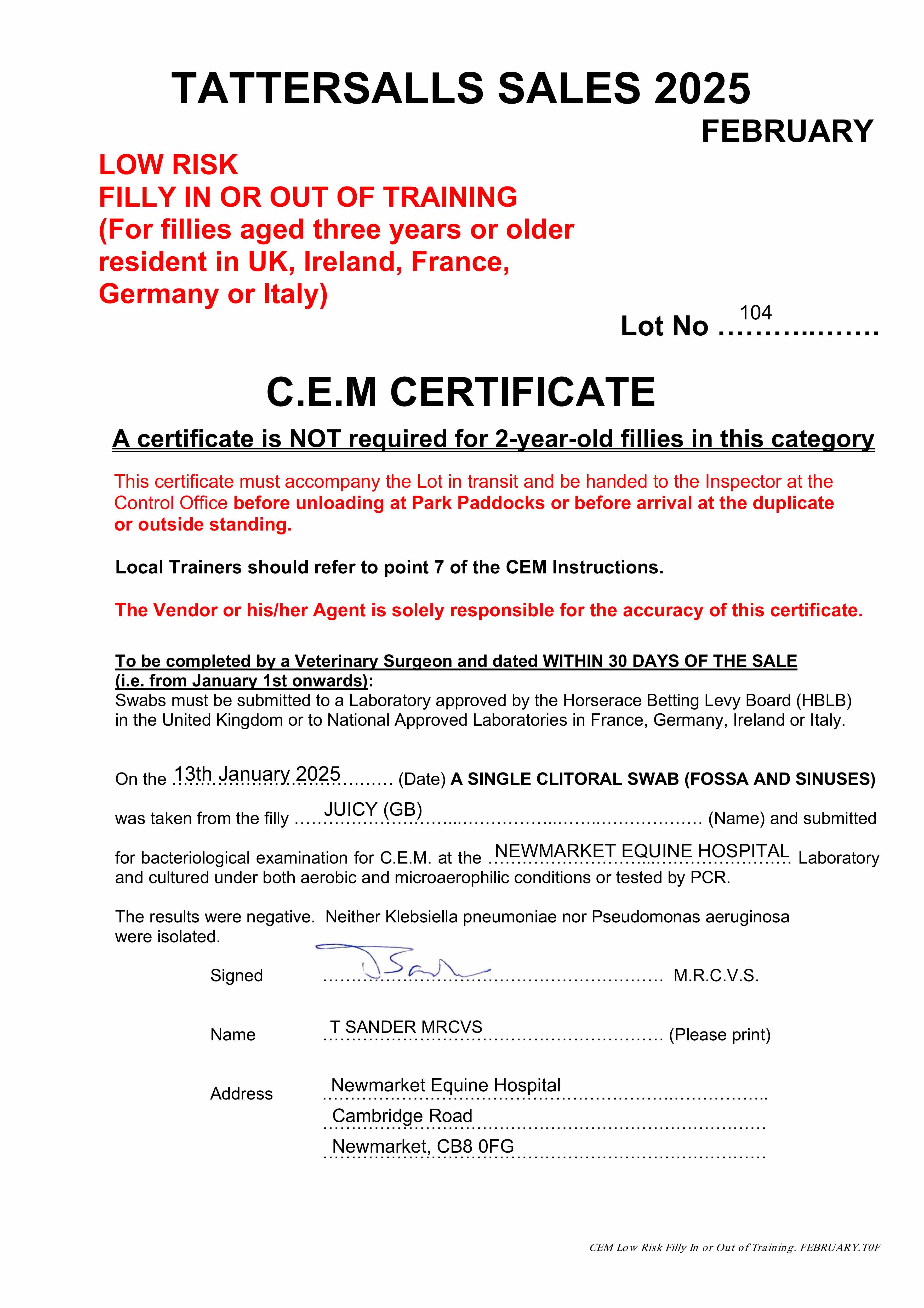 December Foal Sale 2019 lot 1191 F. by Time Test (GB) 2019, The National Stud Ltd.=>Vendor 16,000 gns