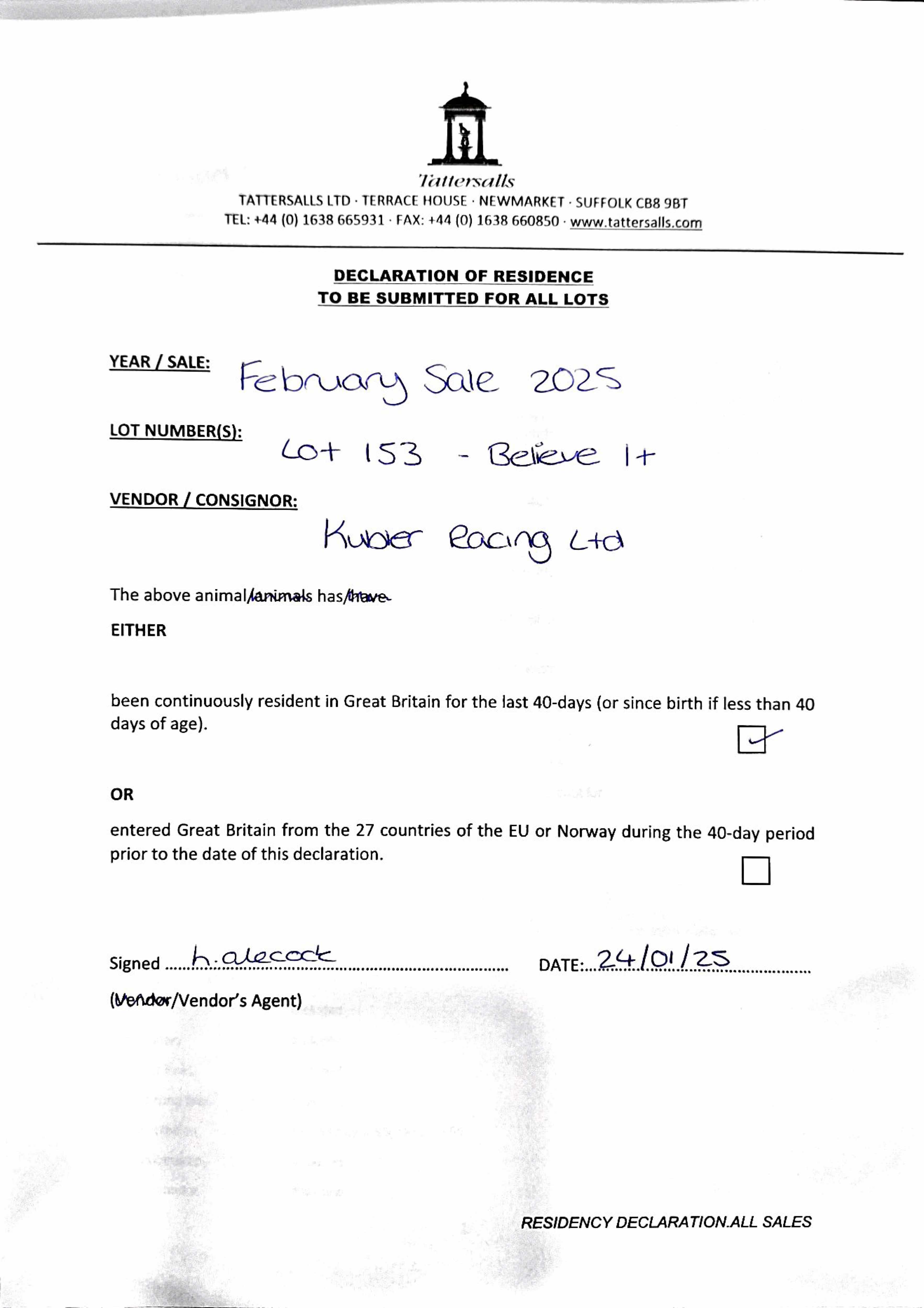Consignor: Kubler Racing Ltd.