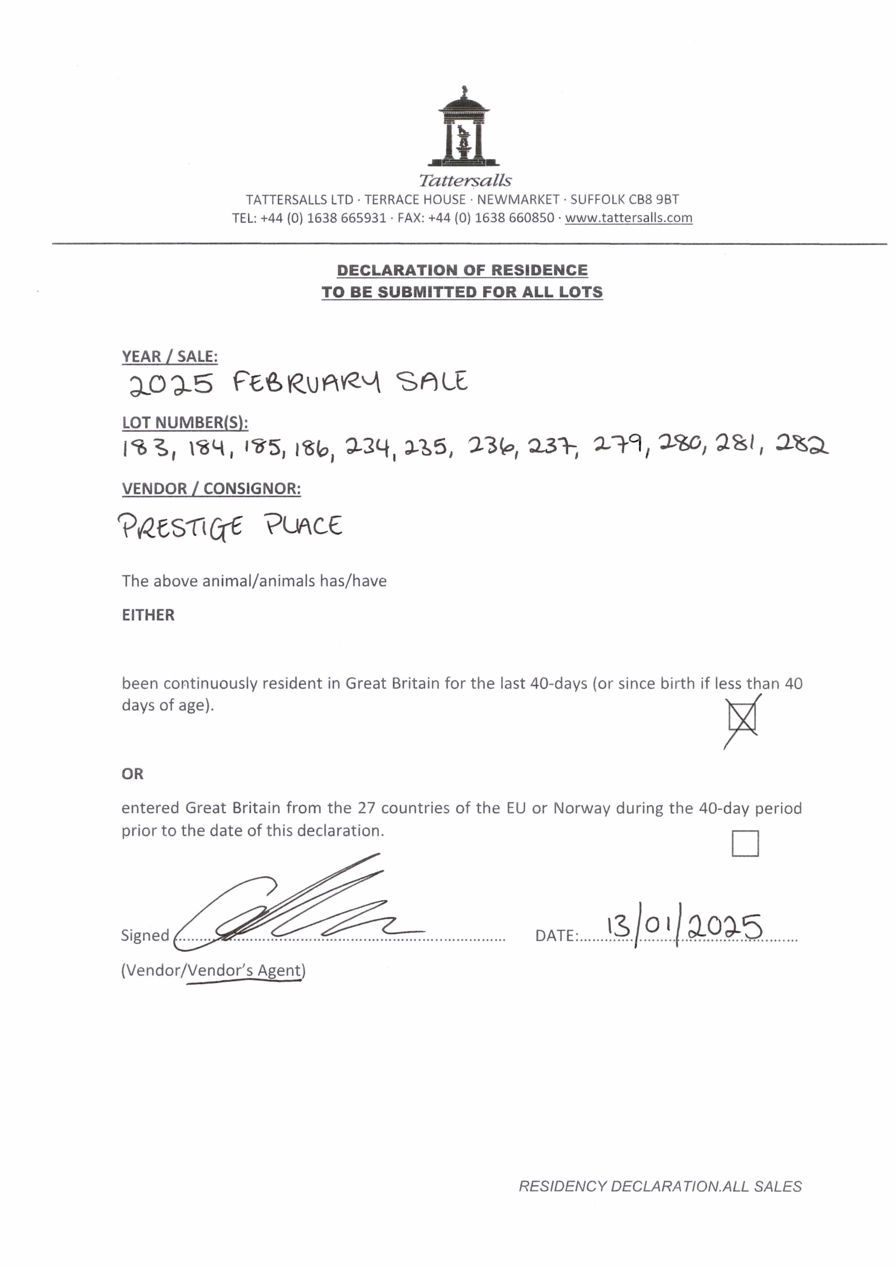 Consignor: Prestige Place (M. Botti)