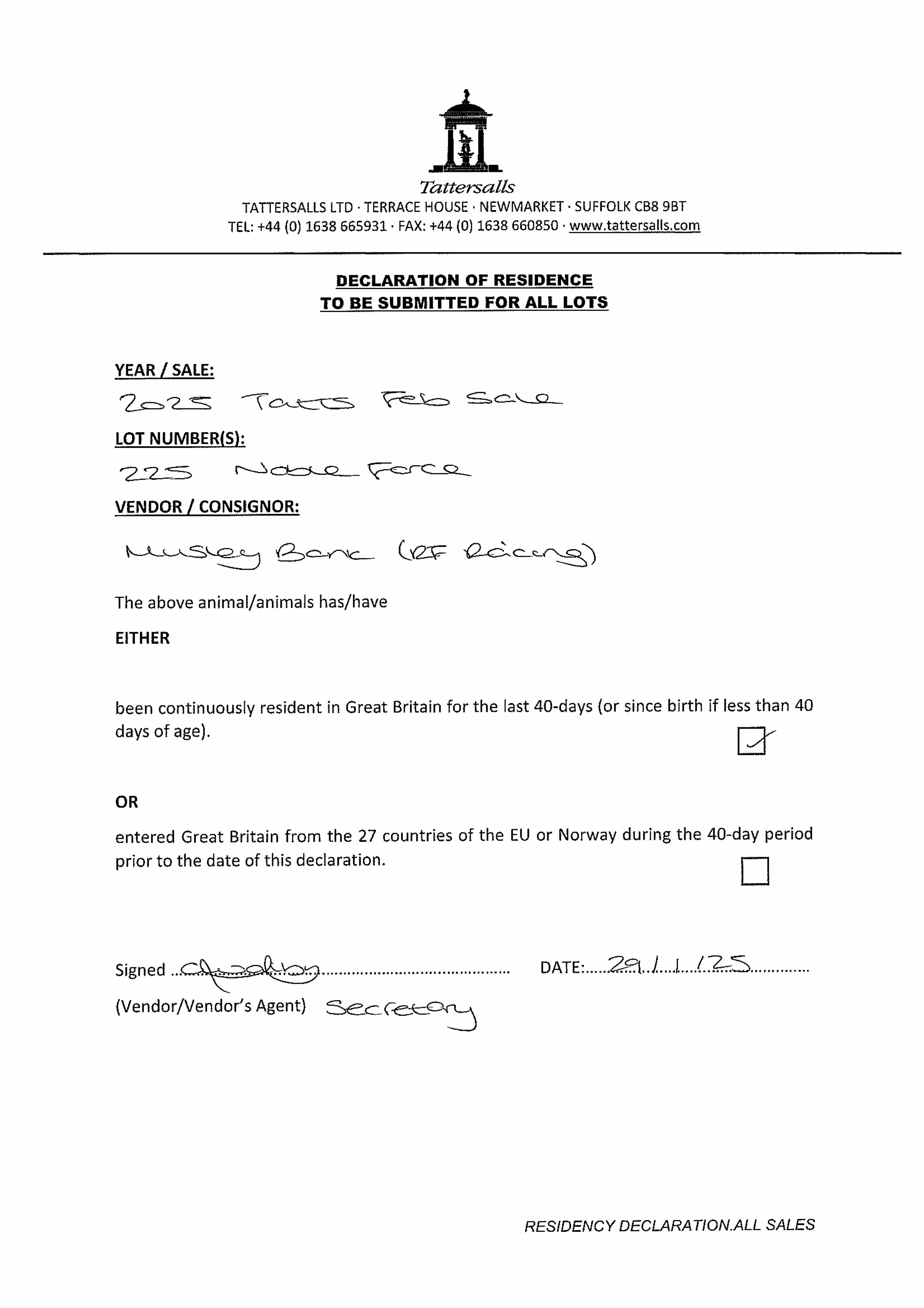Consignor: Musley Bank Stables (R. Fahey)