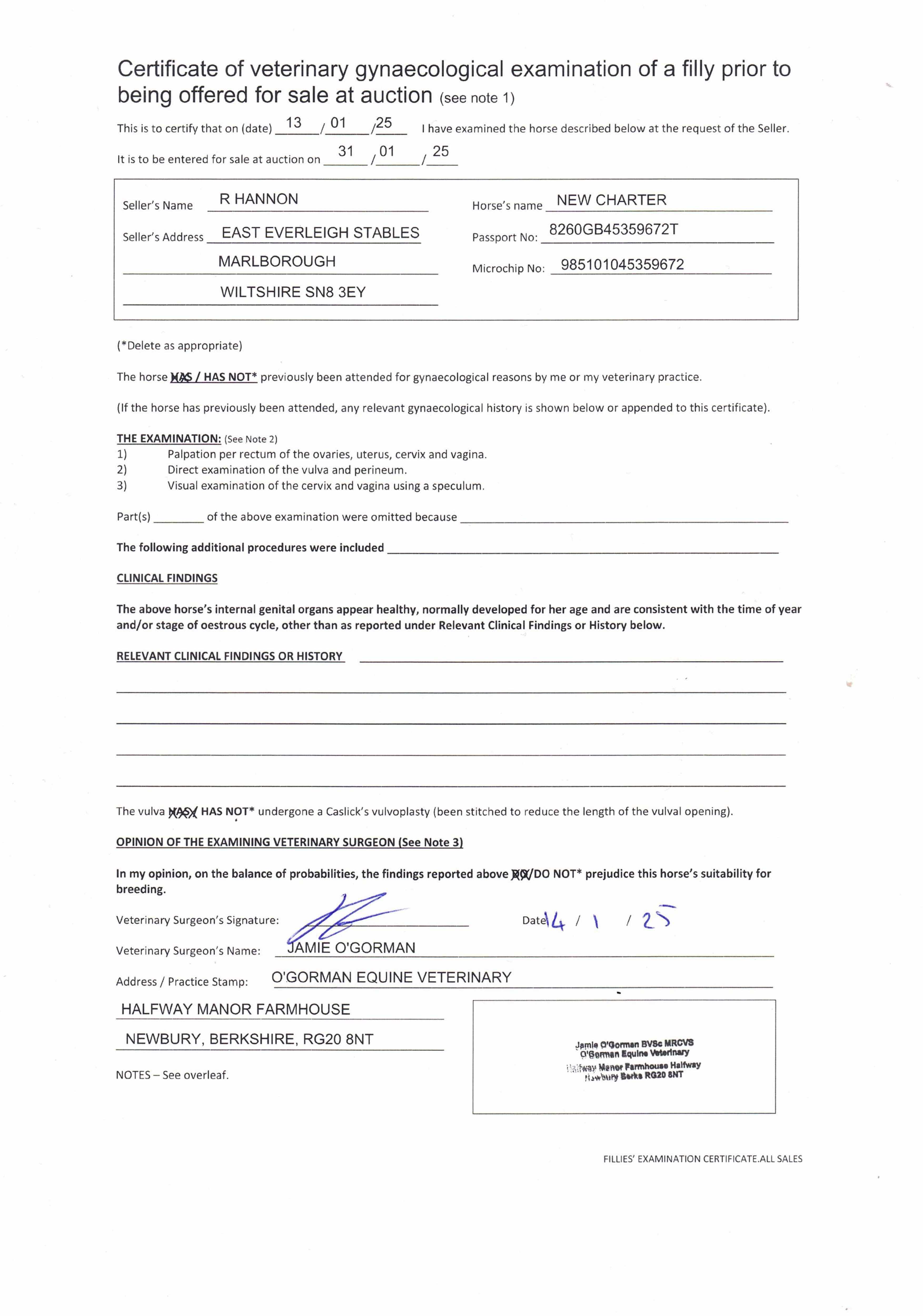 Fillies Examination Cert