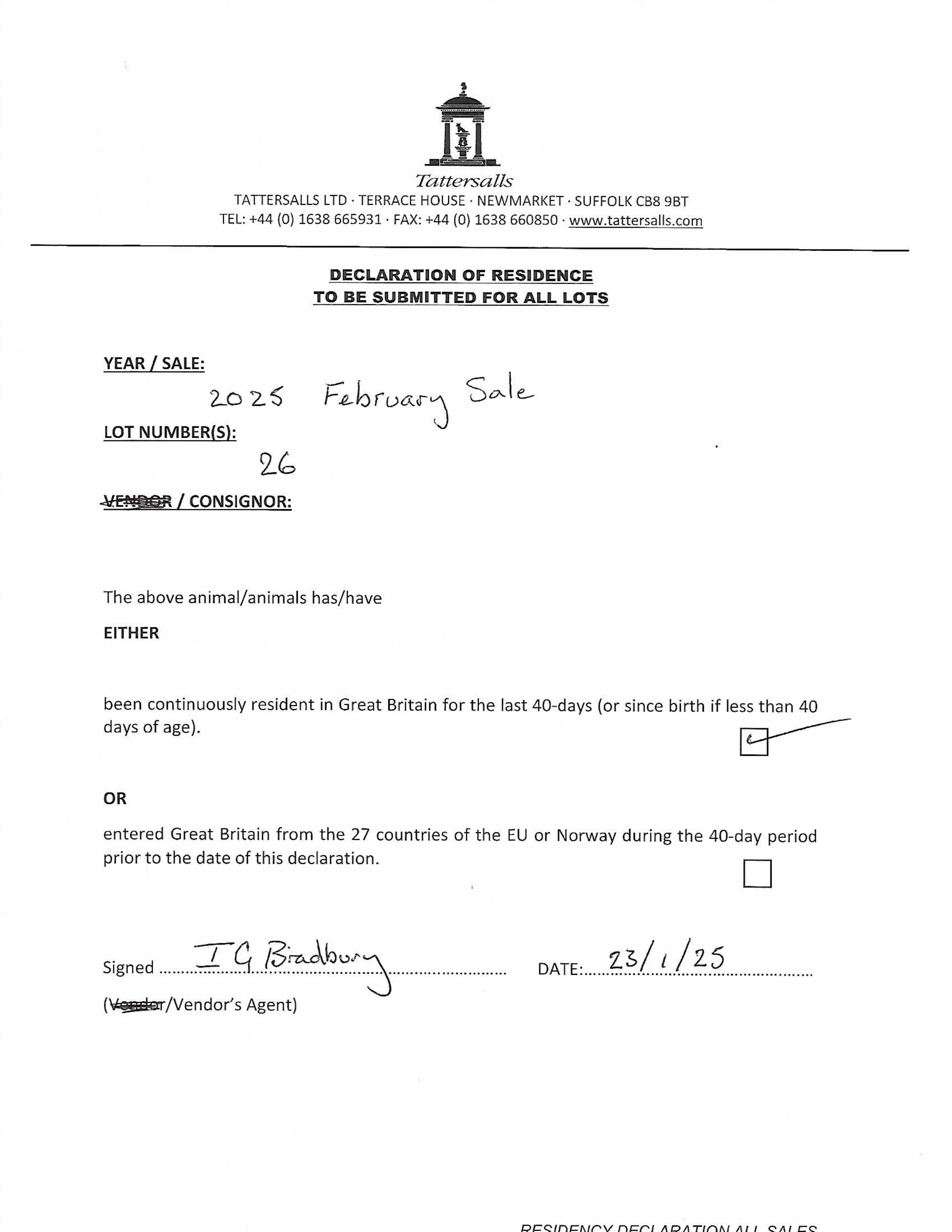 Consignor: Byerley Stud