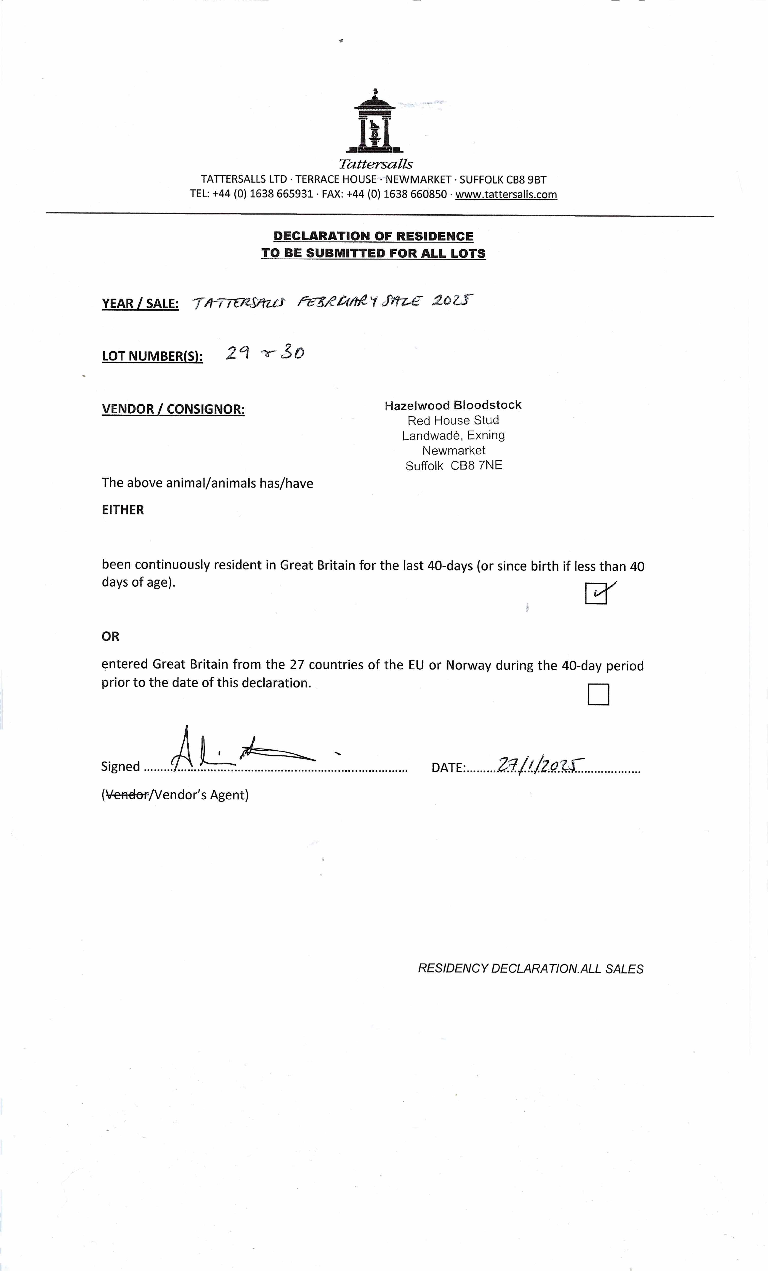 Consignor: Hazelwood Bloodstock