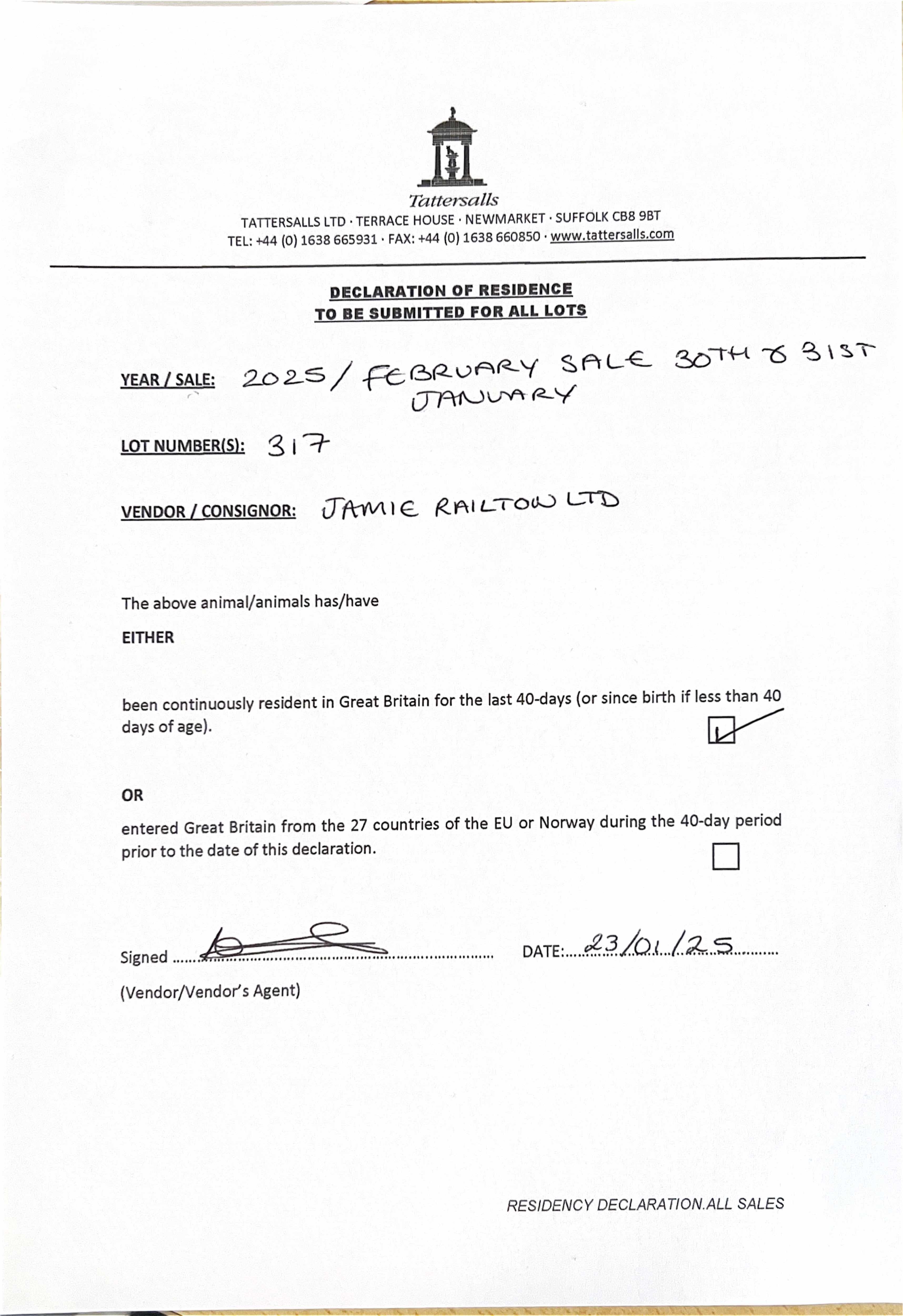 Consignor: Jamie Railton (Agent)