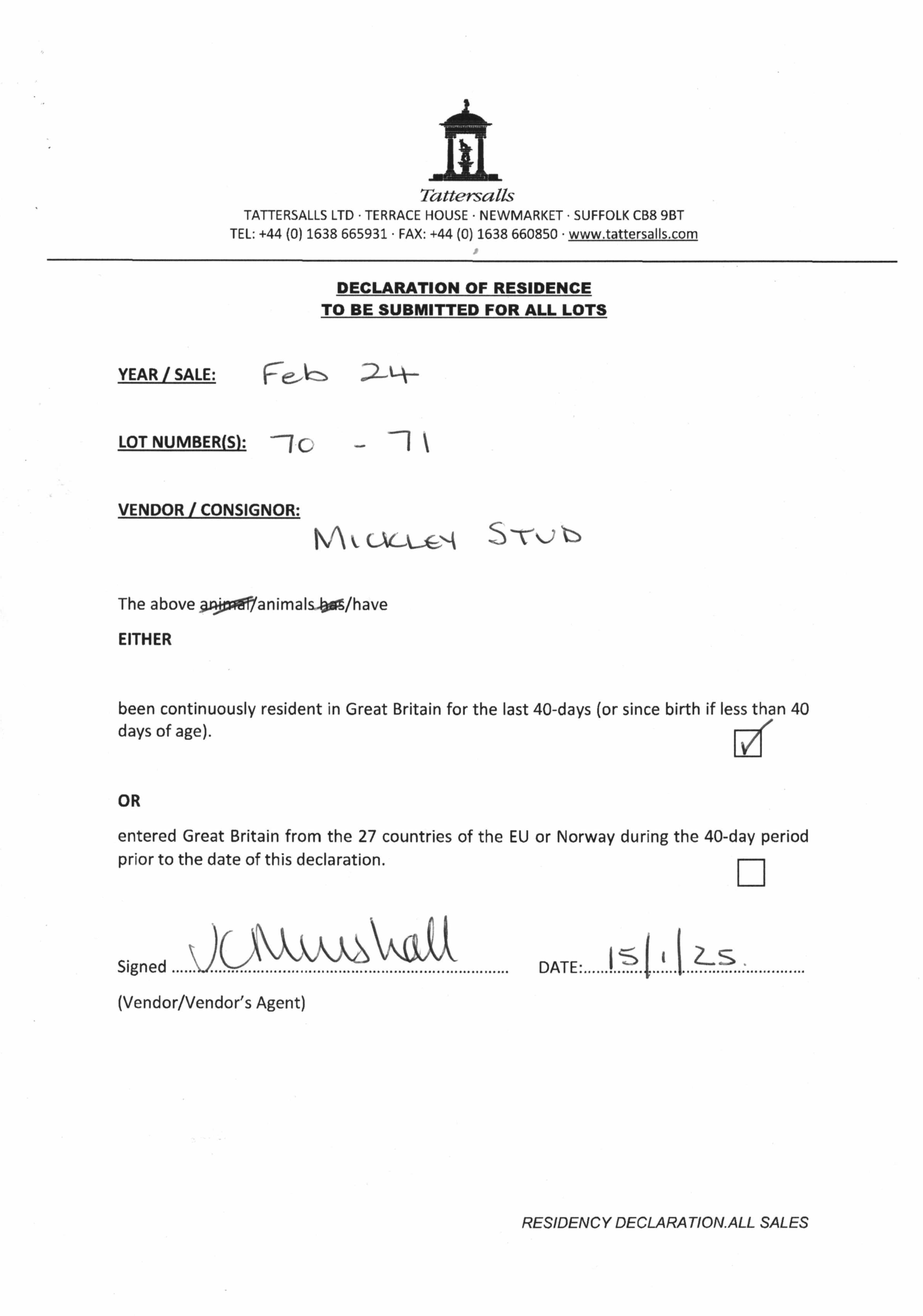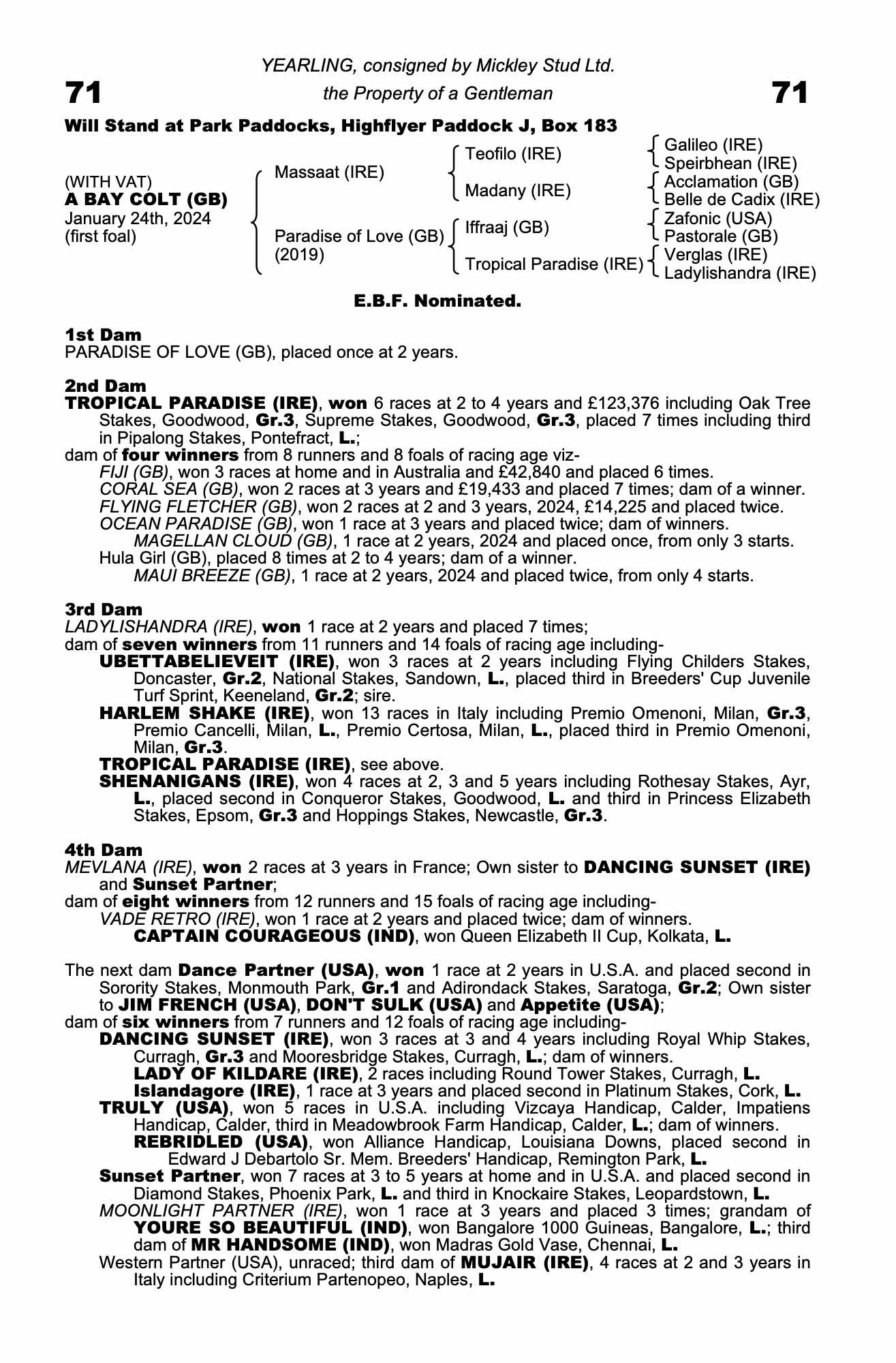 Consignor: Mickley Stud Ltd.