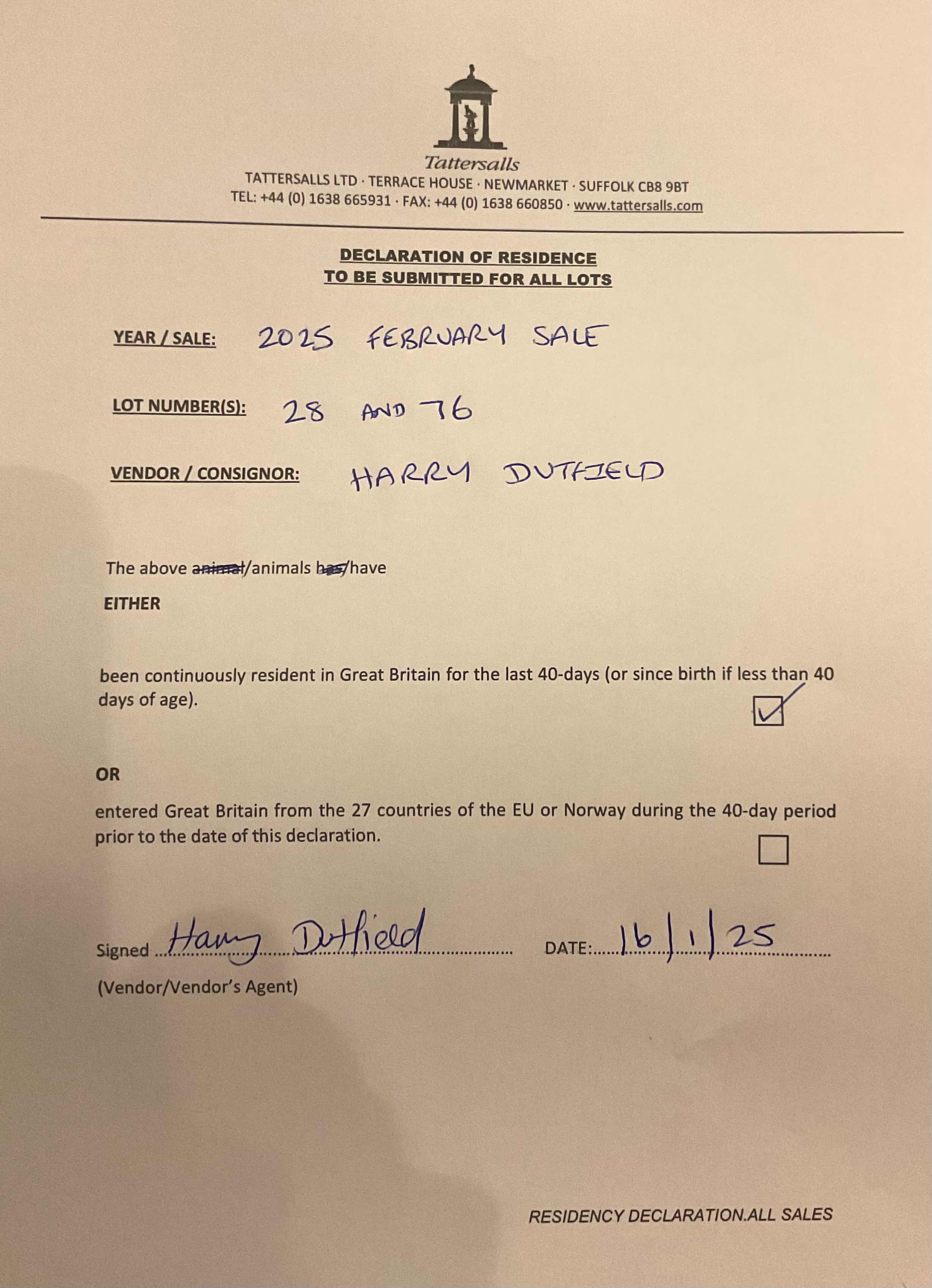 Consignor: Harry Dutfield