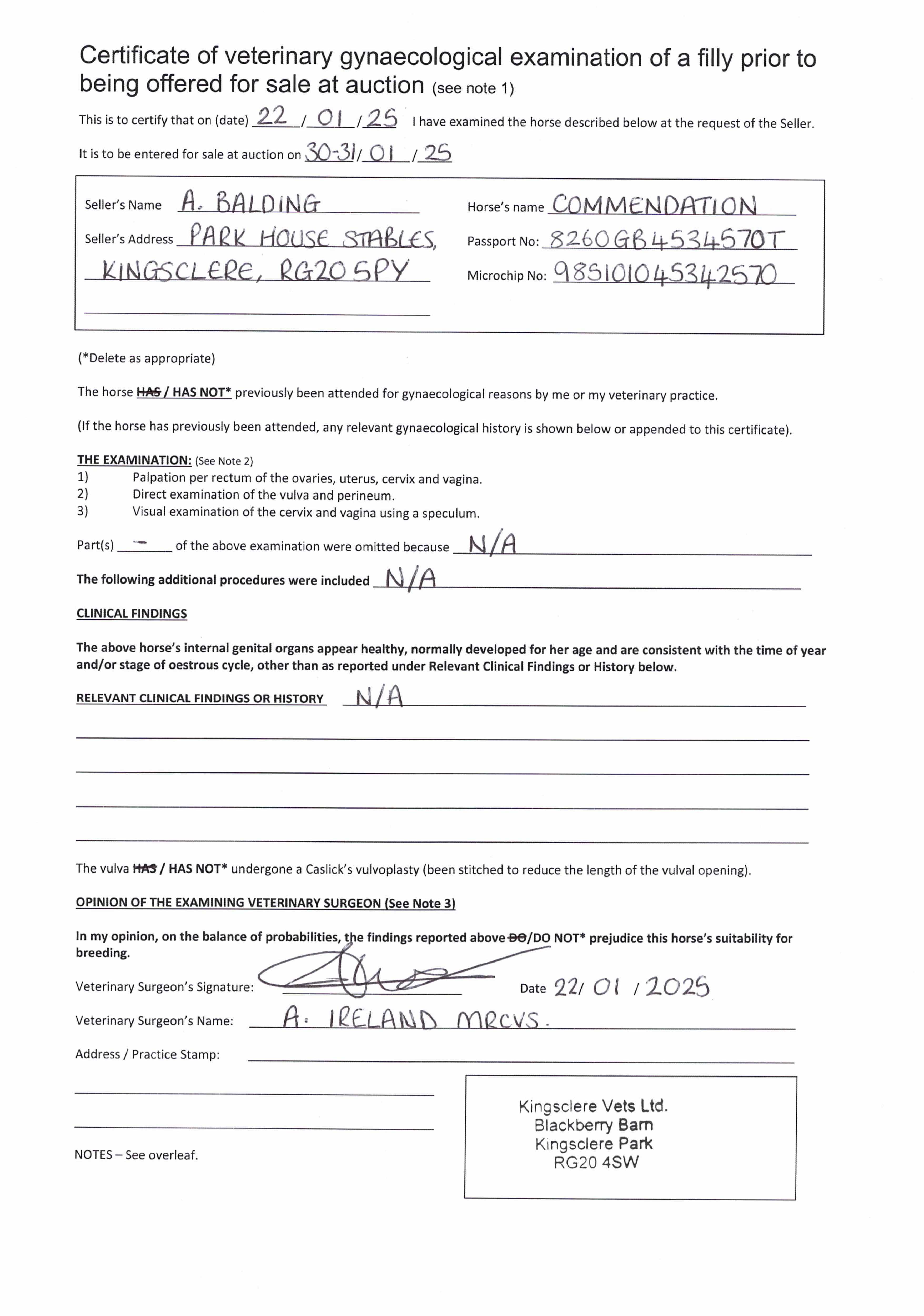 COMMENDATION (GB), ran a few times at 2 and 3 years, 2025.