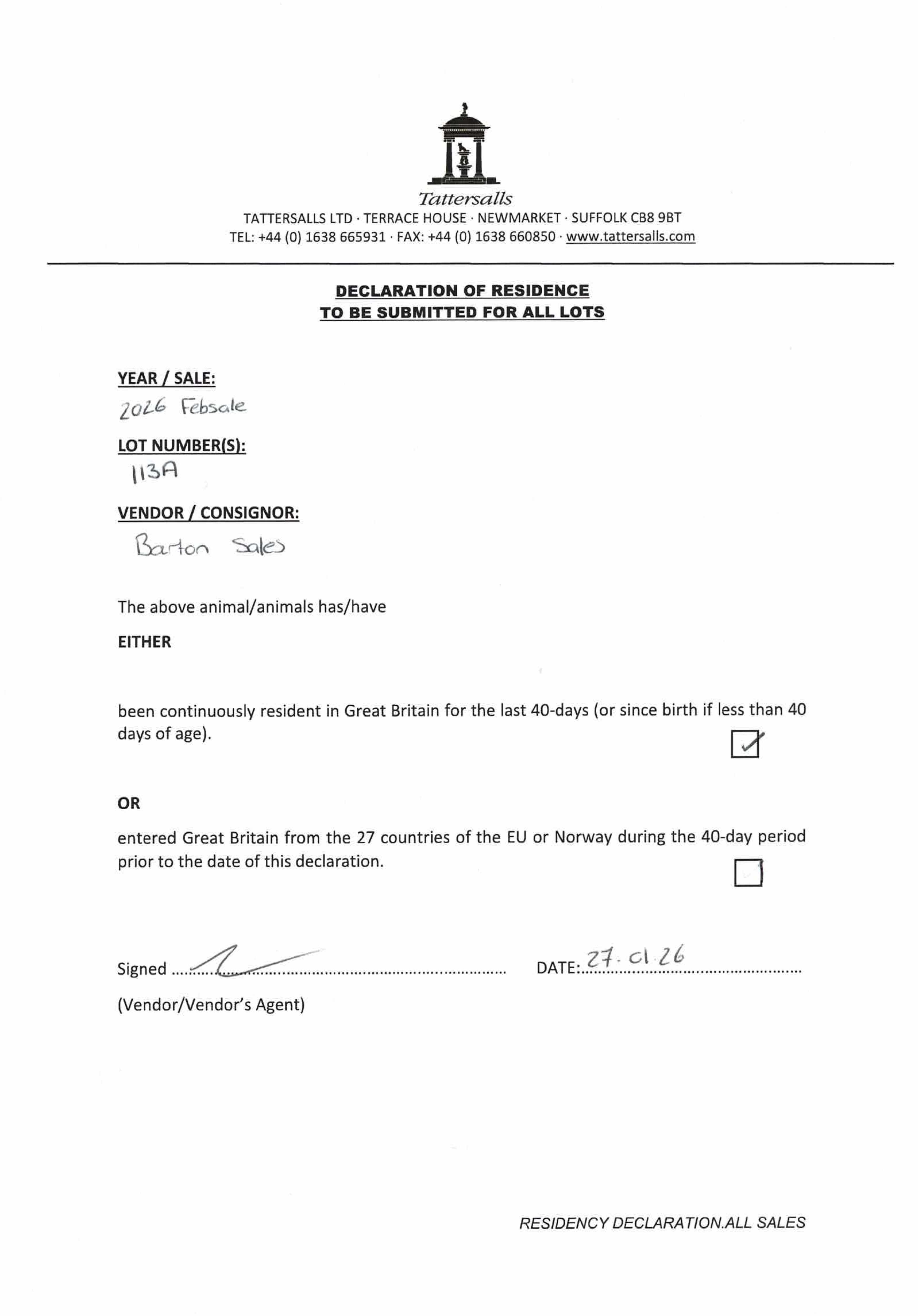 Consignor: Barton Sales