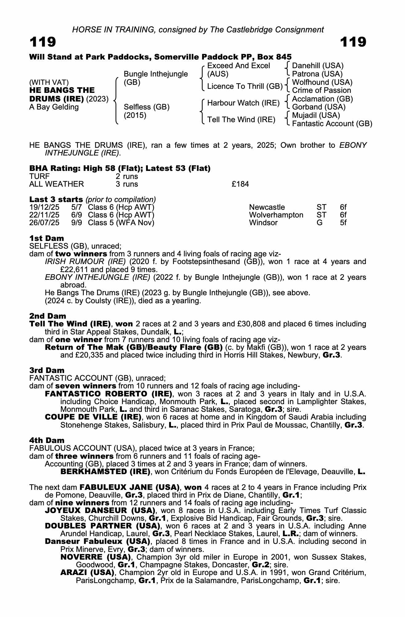 HE BANGS THE DRUMS (IRE), ran a few times at 2 and 3 years, 2026.